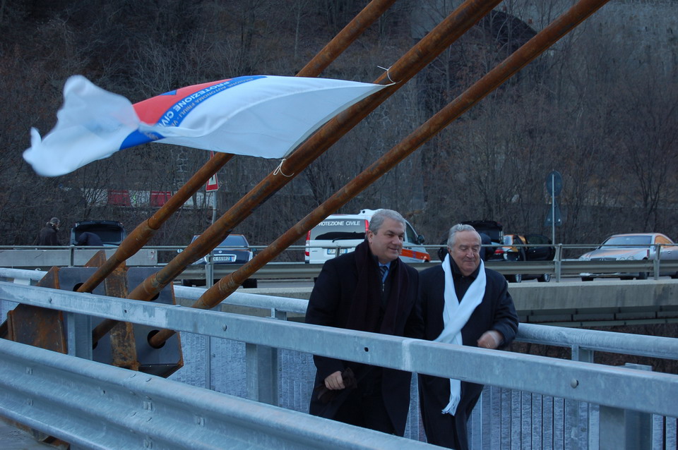 Se si osservava attentamente Guido Bertolaso, si vedeva che era contento ed infatti ha condiviso con i presenti i motivi della sua contentezza: “La mia soddisfazione è legata proprio a questo ponte bailey che da oggi iniziamo a smontare, perché questo ponte ha già una sua destinazione. Una destinazione molto precisa, che simbolicamente che lo porterà in Sudan in un territorio tra i più martoriati dell’Africa con gente poverissima che ci vive. In Sudan c’è un fiume che divide a metà un territorio vasto tre volte l’Italia e che rendeva difficile il semplice vivere quotidiano. Abbiamo preso un ponte gemello a quello di Pietratagliata, lo abbiamo trasportato via nave, caricato nei camion e costruito laggiù in Sudan per collegare queste due parti di terra. Ora la gente non sì dà più appuntamento al fiume per sopravvivere: ora lo attraversa camminando, con i camion e con i vari mezzi che adesso possono transitare. A quelle persone abbiamo raccontato la storia di questo ponte di Pietratagliata, la disperazione e il dolore vissuto dalla sua popolazione dopo l’alluvione, Ma abbiamo anche raccontato la speranza e la soddisfazione della gente di Pietratagliata quando è stato costruito il ponte Bailey. La stessa gioia e la stessa felicità che oggi leggiamo negli occhi di quella povera gente, sono le immagini che ancor di più da oggi con questa inaugurazione potremo dare a tutto il mondo come dimostrazione di questa italianità, di questa genialità, di questa fantasia, di questa passione del nostro paese che è davvero unica in tutto il mondo.”