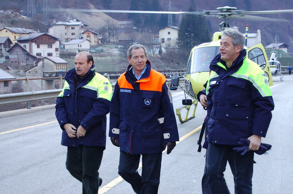 L’onore di concludere i saluti è spettato al Capo Dipartimento della Protezione civile nazionale, Guido Bertolaso, che ha rimarcato una volta in più la grande valenza e efficacia del modello Friuli. “Non ho ancora visto da nessuna altra parte quanto vidi qui i giorni seguenti al 29 agosto 2003; vidi gente impegnata, che si rimboccava le maniche e lavorava fianco a fianco a volontari, a fianco dei vigili del fuoco, delle forze armate e dell’ordine, a fianco degli amici sloveni ed austriaci per cercare di ripulire strade, case e quanto l’acqua aveva mosso. Pochi mesi dopo dei segnali tangibili di quell’alluvione non vi era più traccia e al loro posto c’era per esempio il ponte bailey. Queste cose non riesco purtroppo ancora a vederle in altre regioni italiane” . Ha poi ricordato la tragedia dello tsunami di due anni fa nello Sri Lanka e come la grande macchina della solidarietà italiana si era mossa per soccorrere quanto prima le popolazioni terremotate e ha fatto presente che "come il Friuli si distingue dal resto dell’Italia, così l’Italia si distingue dal resto del mondo quando si tratta di fare interventi di solidarietà".
