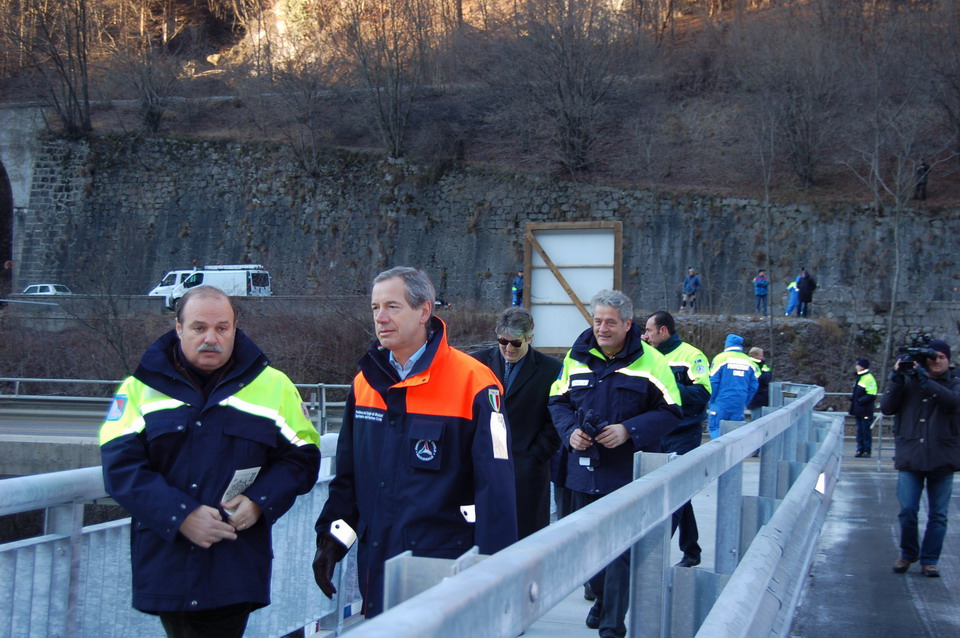 Il ritrovo per tutti era previsto alle ore 10.30 sotto il capannone riscaldato, predisposto dai volontari di Protezione civile delle squadre comunali di Pontebba, Dogna e Moggio Udinese. È qui, infatti che il direttore centrale della Protezione Civile Regionale, Guglielmo Berlasso, ha accolto le tante autorità che hanno voluto essere presenti a questa importante inaugurazione e a loro ha riservato parole di benvenuto e ringraziamento, presentando tutto il progetto degli interventi di protezione civile che la Protezione civile della Regione sta realizzando nell’intera Val Canale e Canal del Ferro, focalizzando comunque la sua attenzione sul ponte strallato che oggi veniva inaugurato.