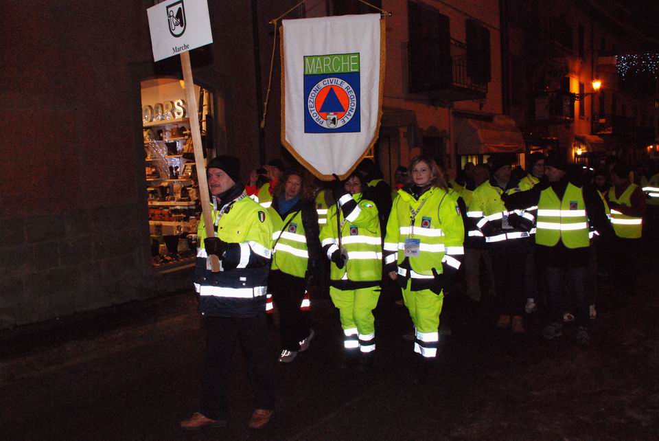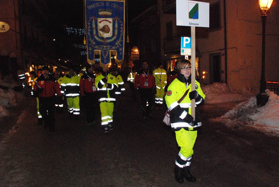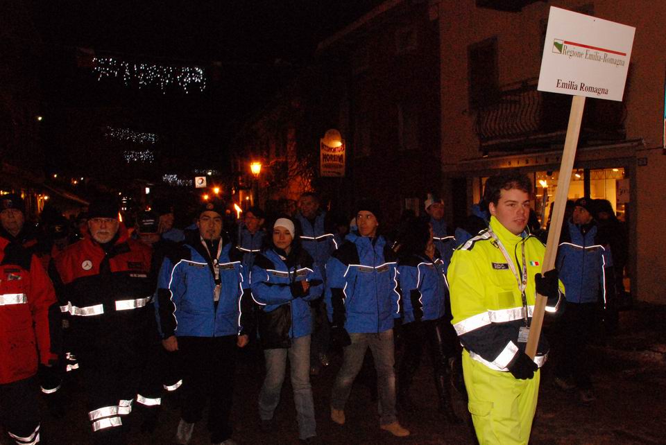 Verso le 19.00, subito dopo il suggestivo spettacolo pirotecnico che ha illuminato il Castello di Sestola, ha preso il via la sfilata inaugurale delle Squadre in gara, che da piazza Passerini hanno “marciato” a ritmo di banda fino a raggiungere il Palazzetto dello Sport. I numerosi componenti delle Rappresentative ufficiali di Protezione civile della Provincia Autonoma di Bolzano, della Provincia Autonoma di Trento, delle Regioni Abruzzo, Calabria, Emilia Romagna, Friuli Venezia Giulia, Lazio, Lombardia, Marche, Piemonte, Sicilia, Toscana, Umbria, Valle d’Aosta, Veneto, oltre alle squadre del Dipartimento nazionale della Protezione civile e della Rivista “La Protezione civile Italiana” e ad una squadra composta da una delegazione Slovena, hanno invaso le vie del centro di Sestola, aprendo ufficialmente il “9° Campionato Italiano di Sci della Protezione civile”. A fare gli onori di casa e ad accogliere tutti i partecipanti, sul palco delle Autorità, il Sindaco di Sestola, Marco Bonucchi, il Sindaco di Fanano, Lorenzo Lugli, il Sindaco di Montecreto, Maurizio Cadegiani, il Sindaco di Riolunato, Giancarlo Cargioli, il Direttore dell’Agenzia Regionale di Protezione civile dell’Emilia Romagna, Demetrio Egidi, il dott. Roberto Giarola del Dipartimento Nazionale della Protezione civile e l'Assessore provinciale Stefano Vaccari. A seguire tutti i presenti si sono ritrovati in un momento conviviale per una degustazione a base di prodotti tipici regionali.