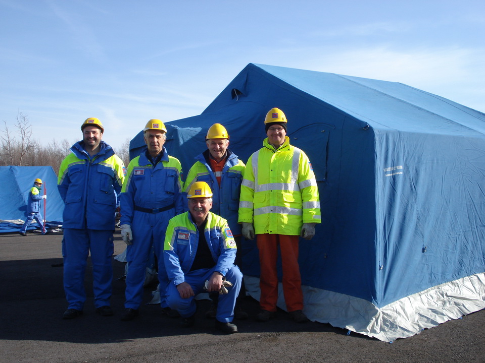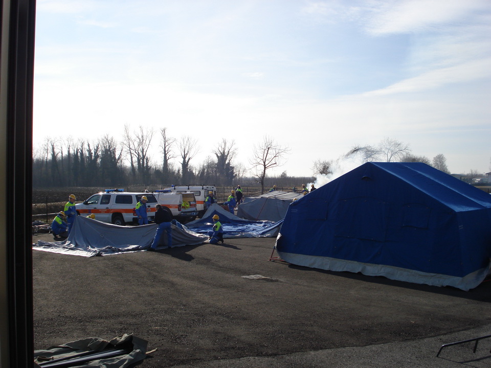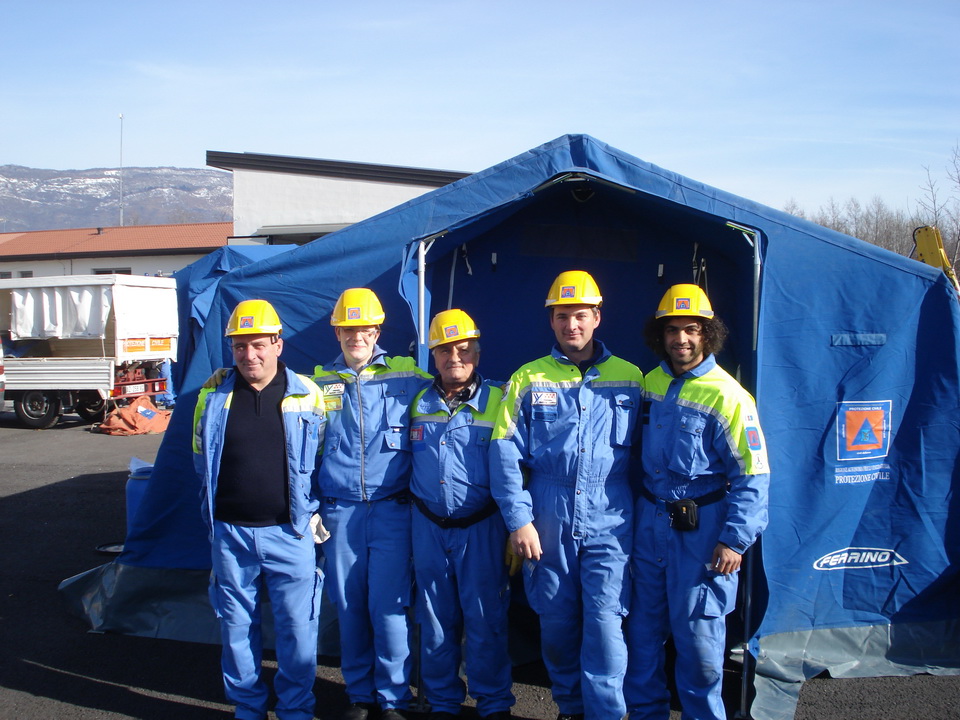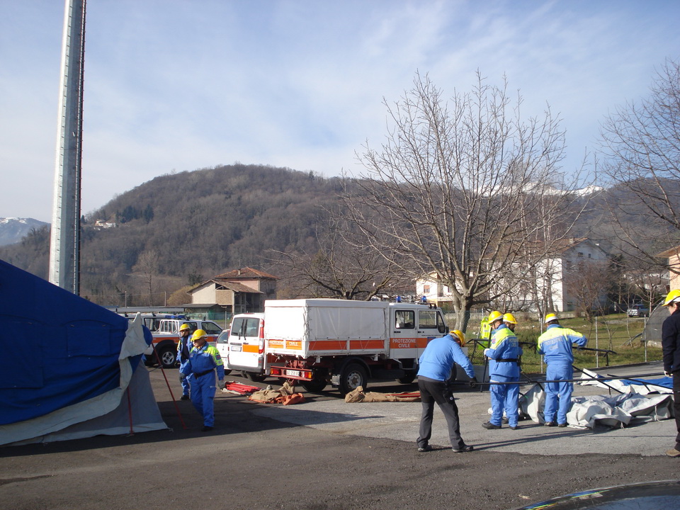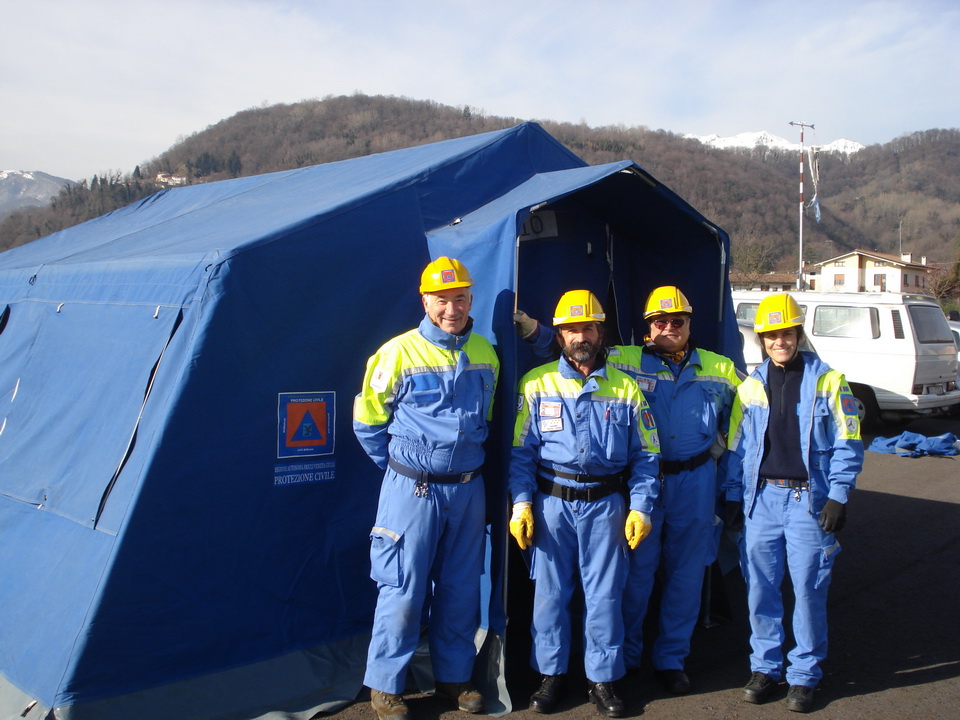 Nella giornata di domenica, oltre ad una prova di progettazione di una ipotetica piccola tendopoli, i volontari, suddivisi in gruppi, hanno effettuato il montaggio e lo smontaggio delle tende, Ferrino 19 e P.I. 88, in dotazione alla Protezione Civile regionale.