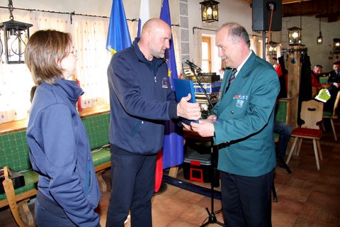Durante l’ultima cerimonia di Cerkno i funzionari della Protezione civile della Regione partecipanti all’evento hanno colto l’occasione per conferire un riconoscimento al collega sloveno Milan Leban e al Direttore tecnico nazionale della Repubblica slovena Miran Bogataj in occasione della loro prossima quiescenza come ringraziamento per il cortese e proficuo rapporto di collaborazione che essi hanno saputo consolidare con la Protezione civile della Regione.