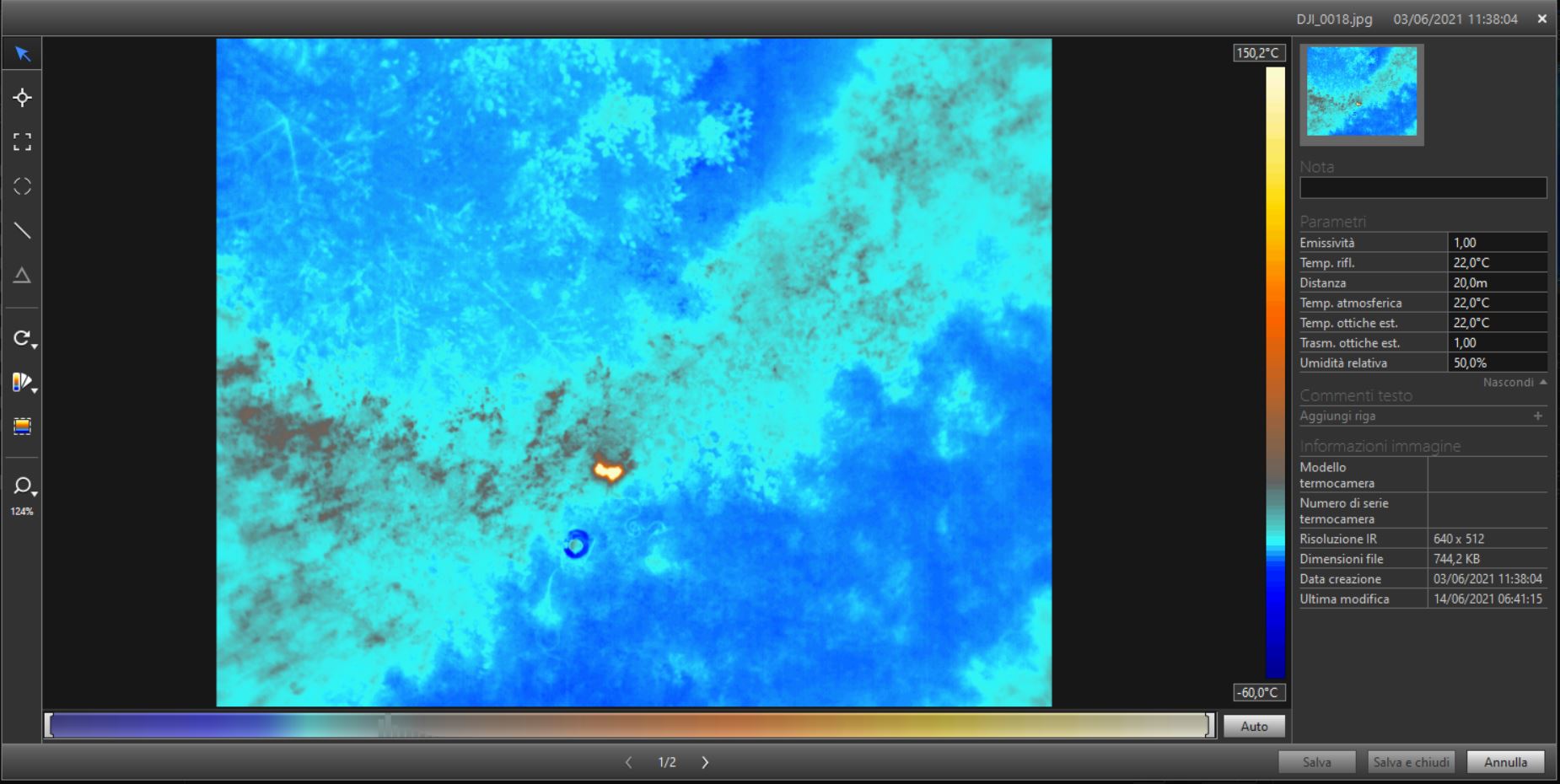 L’attività dell'Unità SAPR si è focalizzata sulla sperimentazione di Sistemi UAS provvisti di fotocamera termica radiometrica per il rilevamento di possibili HotSpot (punti dell'incendio ancora attivi) successivi alle operazioni di spegnimento e successiva bonifica degli incendi boschivi.
