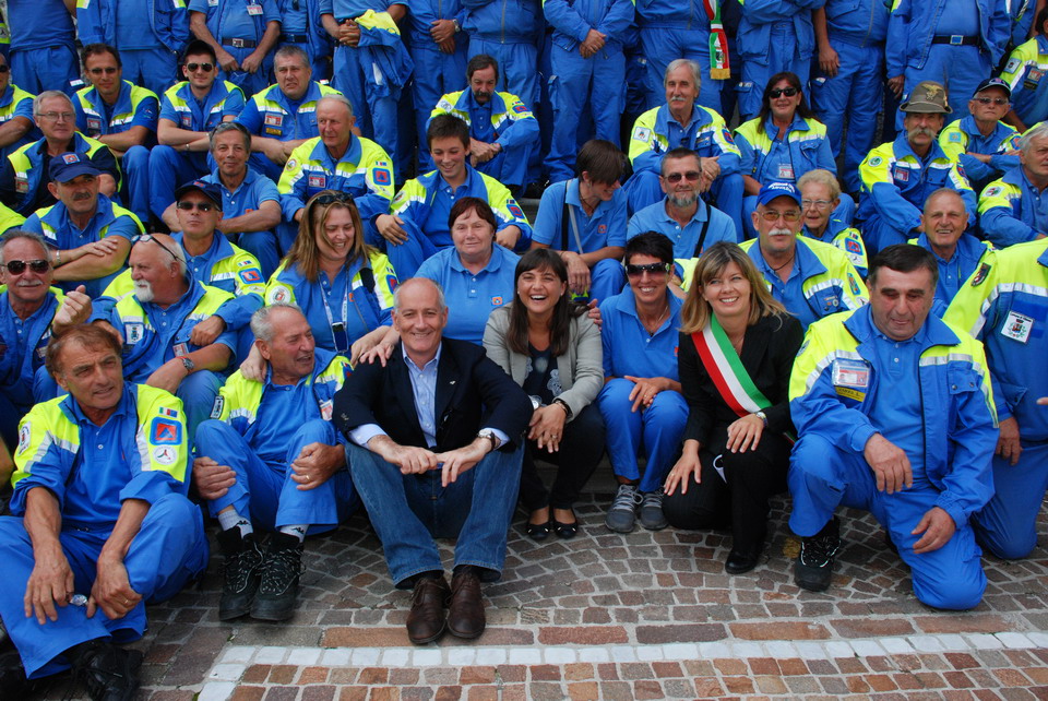 Alla cerimonia hanno partecipato la Presidente del Friuli Venezia Giulia Debora Serracchiani, il Capo Dipartimento della Protezione civile nazionale Franco Gabrielli, la senatrice e attuale sindaco di Pontebba, Isabella De Monte, il Vicepresidente della Giunta Sergio Bolzonello, l'Assessore regionale alla Protezione civile Paolo Panontin, il Presidente del Consiglio regionale Franco Jacop, il Prefetto di Trieste Francesca Adelaide Garufi, il Direttore centrale della Protezione civile regionale Guglielmo Berlasso, i sindaci del territorio, numerosi Consiglieri regionali ed oltre 500 volontari di Protezione civile del Friuli Venezia Giulia.