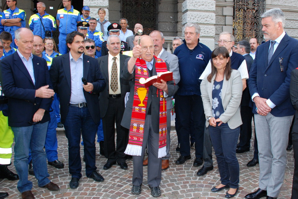 I saluti iniziali sono stati portati da Luigi Clauderotti, nell'agosto 2003 Sindaco di Pontebba, che ha ricordato i giorni della tragedia ed ha ringraziato i volontari che sono accorsi da tutta la regione per prestare soccorso alla popolazione della valle.