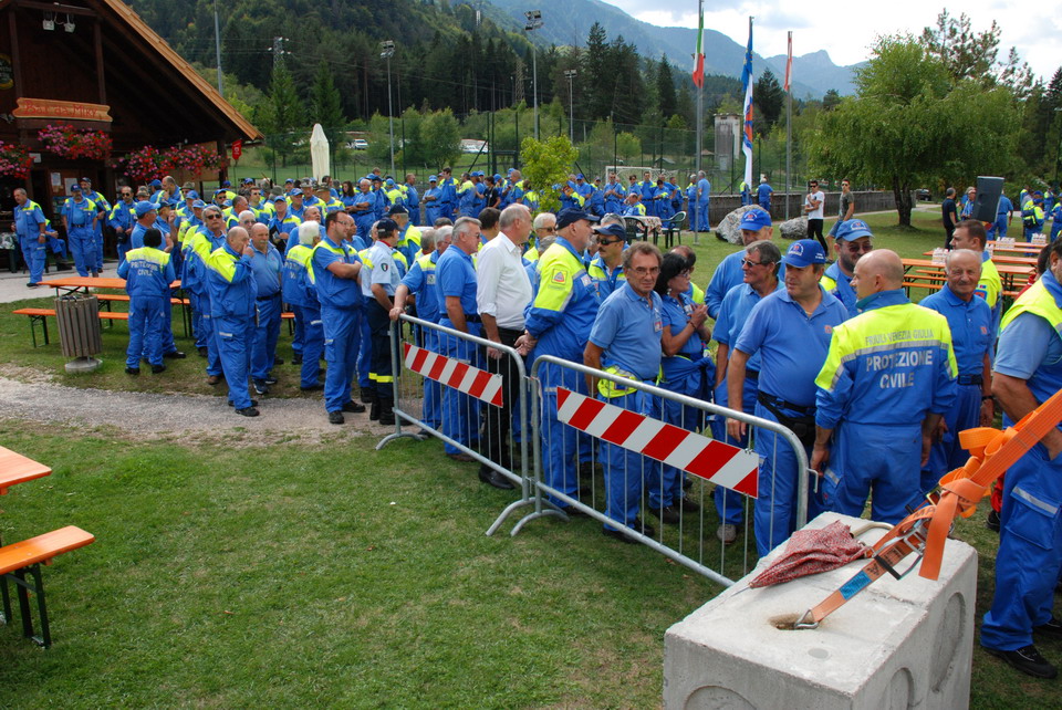 Alla cerimonia hanno partecipato la Presidente del Friuli Venezia Giulia Debora Serracchiani, il Capo Dipartimento della Protezione civile nazionale Franco Gabrielli, la senatrice e attuale sindaco di Pontebba, Isabella De Monte, il Vicepresidente della Giunta Sergio Bolzonello, l'Assessore regionale alla Protezione civile Paolo Panontin, il Presidente del Consiglio regionale Franco Jacop, il Prefetto di Trieste Francesca Adelaide Garufi, il Direttore centrale della Protezione civile regionale Guglielmo Berlasso, i sindaci del territorio, numerosi Consiglieri regionali ed oltre 500 volontari di Protezione civile del Friuli Venezia Giulia.
