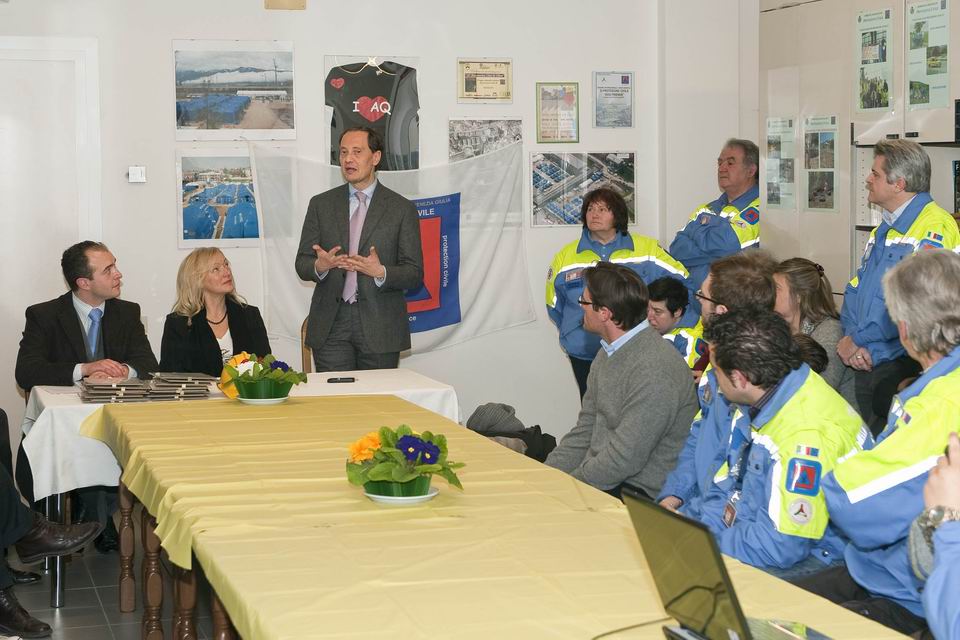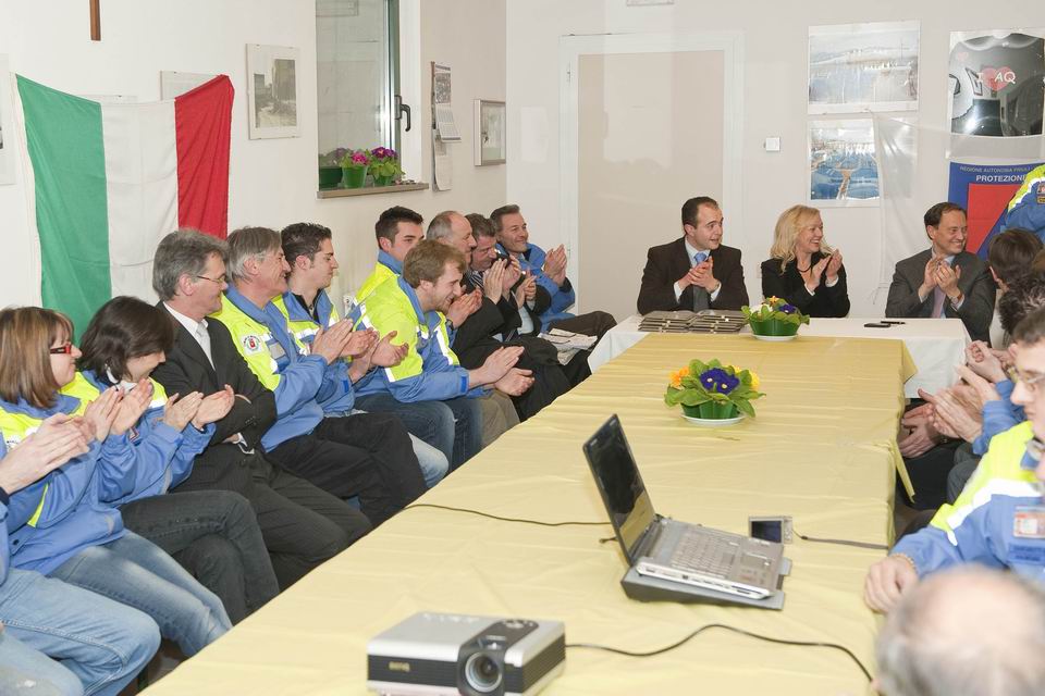 Subito dopo, presso la sede di Protezione civile di Manzano, l’Assessore ha incontrato i volontari del locale Gruppo di Protezione civile e, tra essi, gli insigniti della benemerenza che hanno operato, tra l'altro, in vari teatri tra i quali il terremoto del Molise, l’alluvione che colpì la zona del Pordenonese e la Valcanale-Canal del Ferro, nonché le operazioni di Protezione Civile svoltesi a Roma in occasione delle esequie di papa Giovanni Paolo II ed all’intronizzazione di Papa Benedetto XVI.