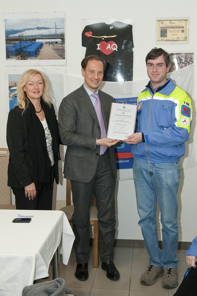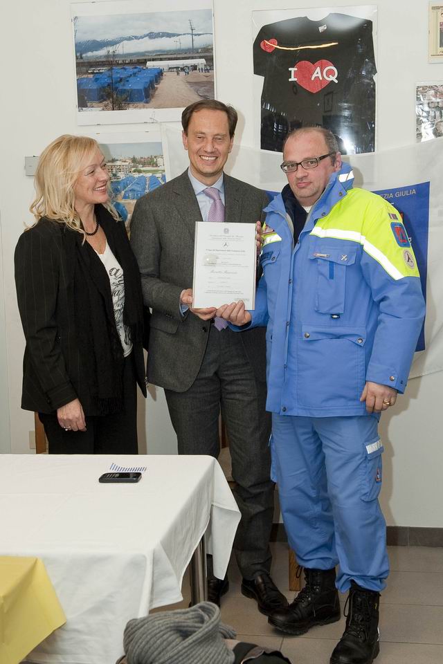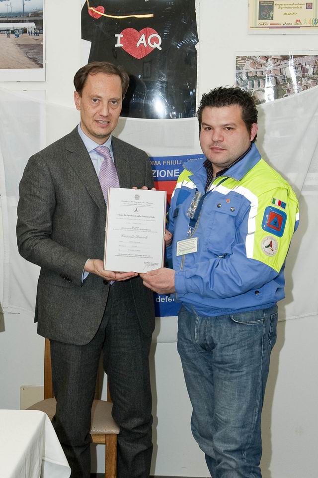 Nei giorni scorsi, il Vice Presidente della Giunta Regionale ed Assessore alla Protezione Civile, dott. Luca Ciriani, ha consegnato gli attestati di Pubblica Benemerenza, rilasciati dal Dipartimento Nazionale della Protezione Civile, a 17 volontari della Squadra Comunale di Protezione Civile del Comune di Manzano.