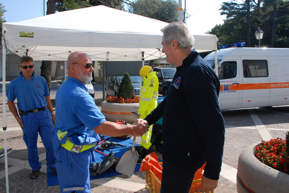 La giornata è terminata nella vicina sede della Protezione civile comunale, inaugurata nei mesi scorsi, con un momento conviviale fra volontari, autorità e cittadinanza. Al termine, il Coordinatore del Gruppo comunale della Protezione civile ha omaggiato l’Assessore Regionale Riccardo Riccardi e il Direttore centrale della Protezione Civile della Regione Guglielmo Berlasso con i gagliardetti del Comune di Talmasson.