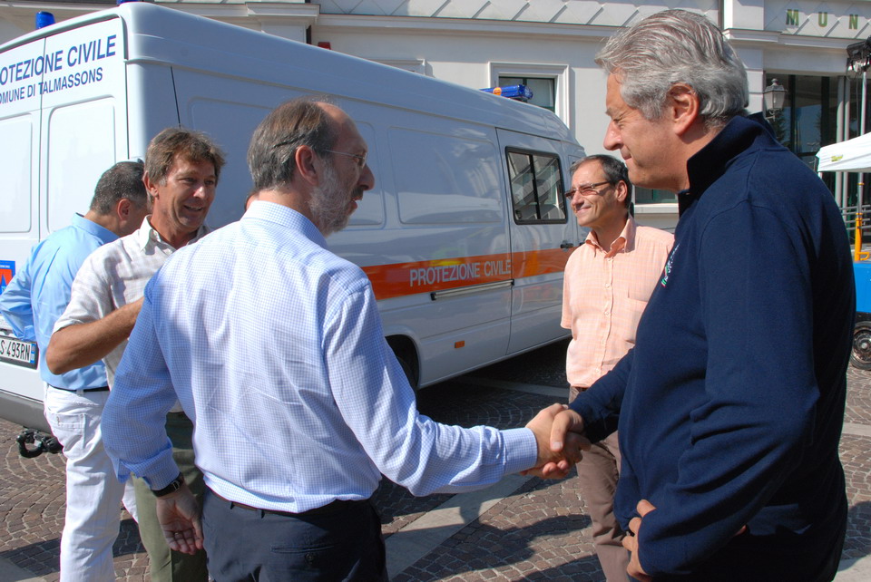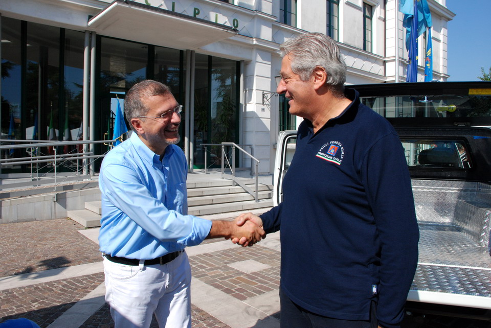 La consegna delle chiavi da parte dell’Assessore Regionale Riccardo Riccardi al Coordinatore del Gruppo comunale della Protezione civile Gianni Ponte, è avvenuta al termine dei discorsi di rito tenuti davanti al palazzo municipale, alla presenza dei volontari del Comune. Alla cerimonia hanno partecipato anche il Sindaco Piero Mauro Zanin, il Direttore centrale della Protezione Civile della Regione Guglielmo Berlasso, il vice Sindaco Fabrizio Pitton e gli Assessori comunali Roberto Grassi e Beppino Turco.