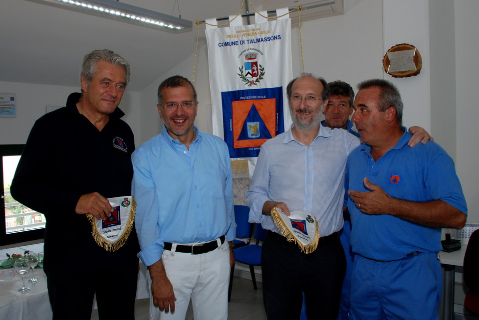 La giornata è terminata nella vicina sede della Protezione civile comunale, inaugurata nei mesi scorsi, con un momento conviviale fra volontari, autorità e cittadinanza. Al termine, il Coordinatore del Gruppo comunale della Protezione civile ha omaggiato l’Assessore Regionale Riccardo Riccardi e il Direttore centrale della Protezione Civile della Regione Guglielmo Berlasso con i gagliardetti del Comune di Talmasson.