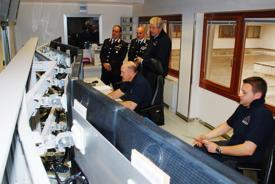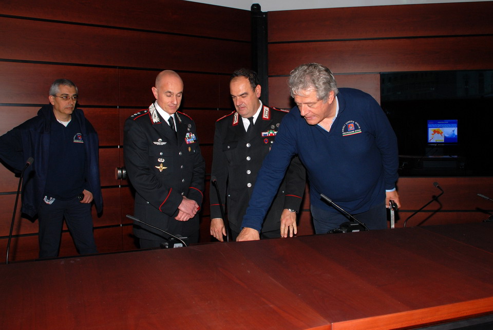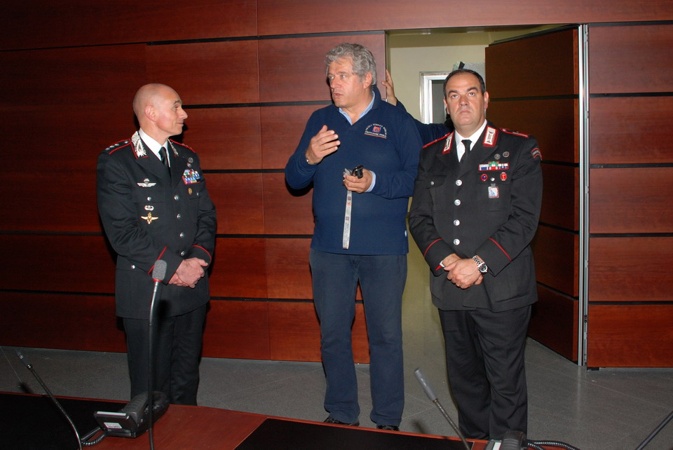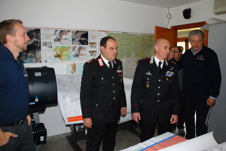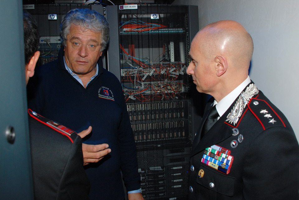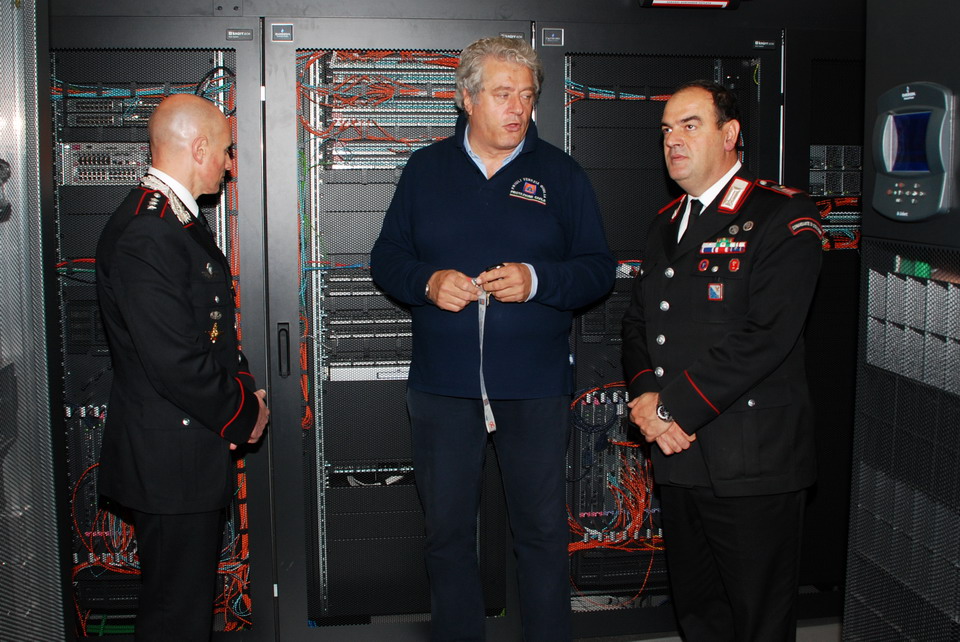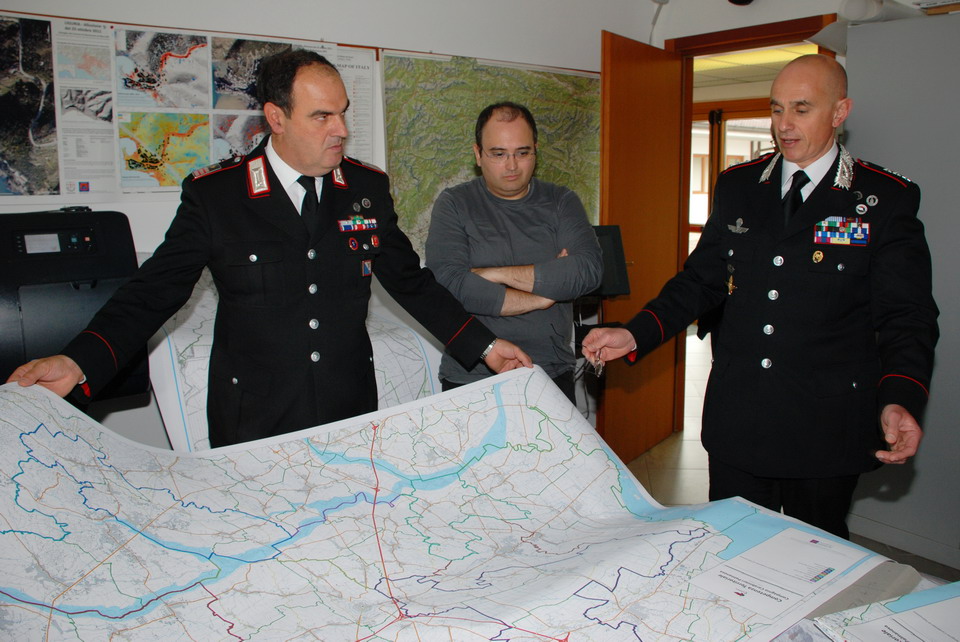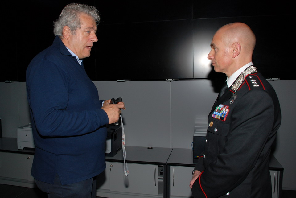 Nella mattinata di giovedì 30 maggio 2013 il Comandante della Compagnia Carabinieri di Palmanova, Capitano Maurizio Maiani, accompagnato dal Comandante della Stazione dei Carabinieri di Palmanova, Luogotenente Antonio Tomaiuolo, ha visitato la Sede regionale della Protezione civile di Palmanova. Gli ospiti sono stati accolti dal Direttore Centrale della Protezione civile, dott. Guglielmo Berlasso, che ha illustrato l’attuale assetto operativo, tecnologico e funzionale della struttura di Palmanova, nonché la sua evoluzione futura, soffermandosi in particolare sull’indispensabile collaborazione tra le istituzioni nella gestione di emergenze che colpiscono la popolazione e il territorio regionale. La visita si è quindi sviluppata dal polo cartografico alla Sala Operativa Regionale (SOR), passando dal centro di calcolo alla sala emergenze, per terminare nel nuovo Centro Funzionale, all’interno del quale verrà allestita, tra l’altro, la nuova sala interforze per la gestione congiunta delle emergenze. Gli ospiti hanno avuto così modo di conoscere le complesse strumentazioni utilizzate dalla Protezione civile Regionale nell'attività di sorveglianza fisica del territorio, di prevenzione ed allertamento e di gestione dei soccorsi. In particolare il Direttore ha illustrato le componenti tecnologiche utilizzate per la realizzazione della nuova Sala Operativa Regionale e della Sala interforze per la gestione delle emergenze che le rendono all’avanguardia dal punto di vista tecnologico e che rendono il Centro un esempio sia in ambito nazionale che in quello europeo.