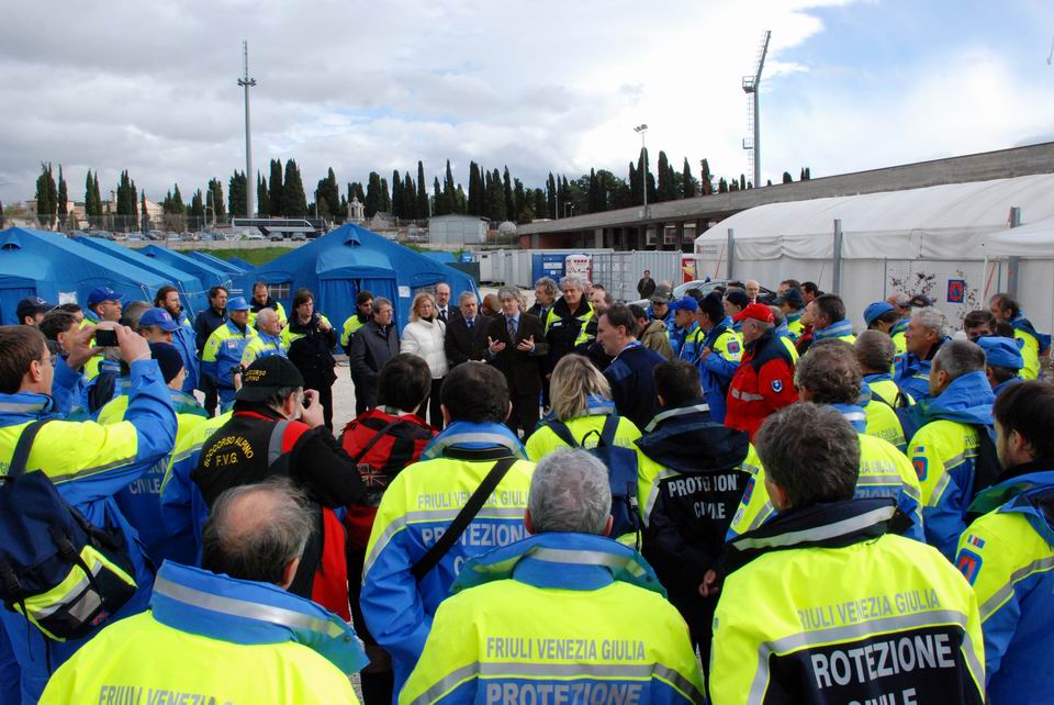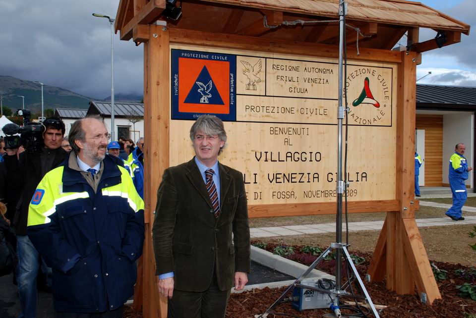 Il Presidente Berlusconi ha ringraziato il Friuli Venezia Giulia per la risposta di alta solidarietà data in Abruzzo e in particolare per come la Protezione civile del Friuli Venezia Giulia, grazie all'esperienza maturata con il terremoto del 1976 e alle sue capacità, ha realizzato le 16 unità abitative in tempi ristretti.
