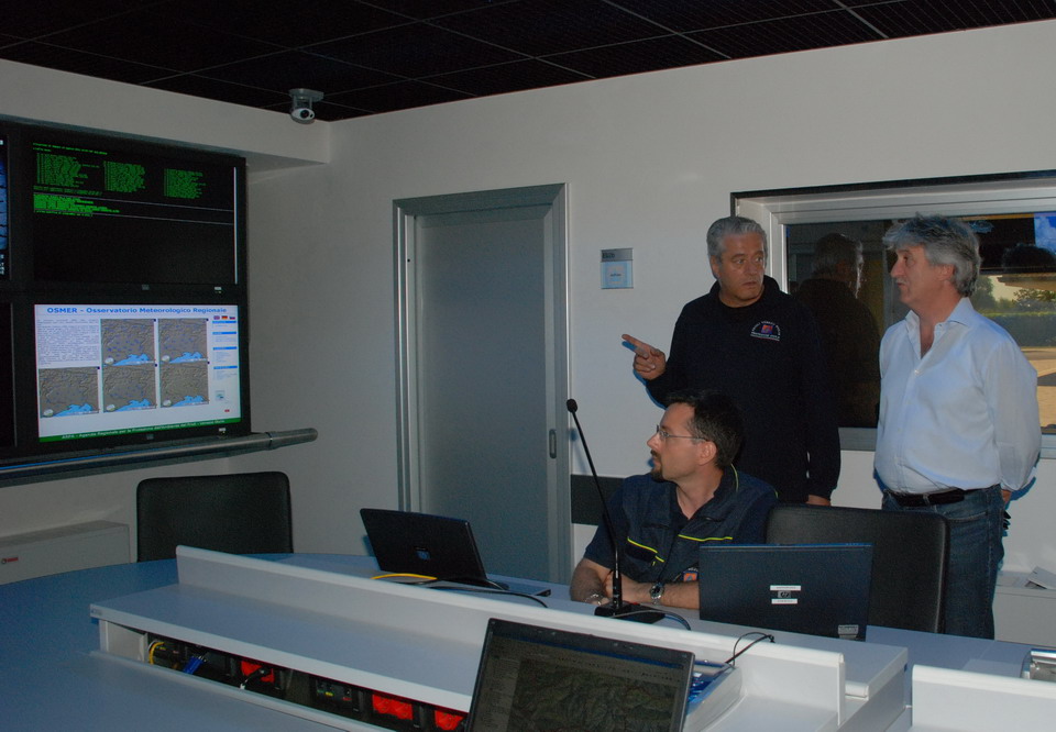 La visita è iniziata presso la Sala Operativa Regionale (SOR) e la sala emergenze, il Direttore ha illustrato le procedure di allertamento predisposte dalla Protezione civile regionale e la strumentazione utilizzata per la sorveglianza fisica del territorio: la rete idrometeorologica e la rete sismica, elementi fondamentale delle azioni di prevenzione, previsione e pronto intervento.