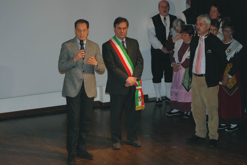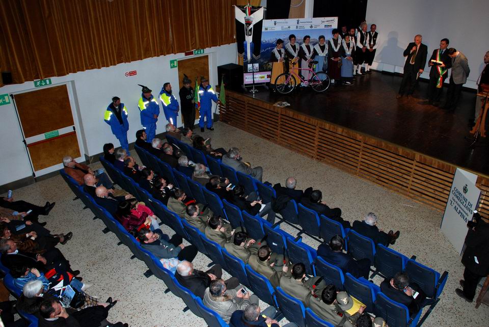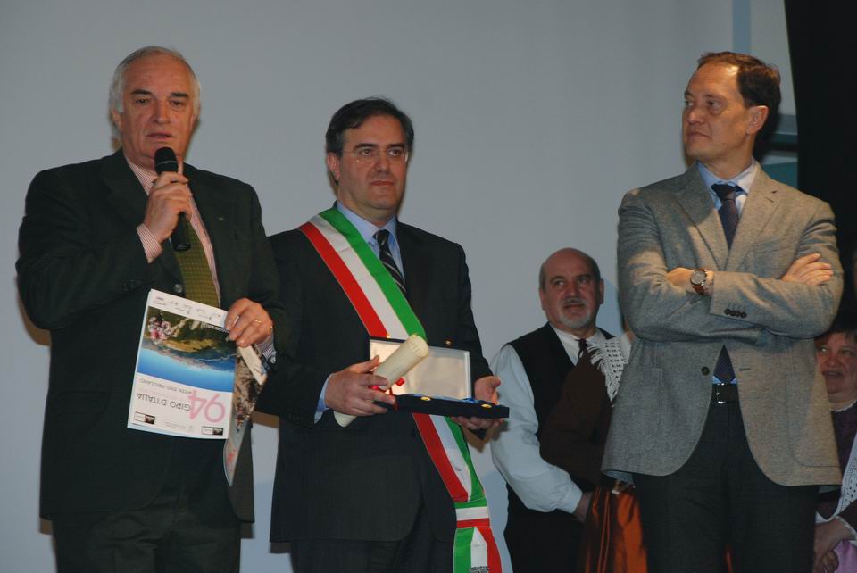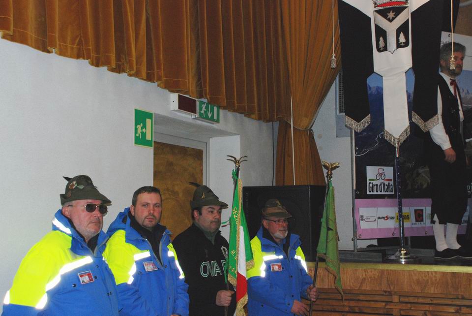 Tutti i presenti si sono poi recati nel Teatro l’Alpina di Comeglians, dove il Sindaco De Antoni ha conferito ad Enzo Cainero la cittadinanza onoraria «per aver fatto conoscere Comeglians a tutto il mondo grazie all’arrivo del Giro d’Italia». Al Colonnello Salvatore Scirè è stata invece consegnata la maglia tricolore del Giro d’Italia dedicata agli Alpini della Julia. L’Assessore alla Protezione civile Luca Ciriani, nel discorso di chiusura della manifestazione, si è soffermato sull’importanza che il Giro d’Italia sta avendo per il rilancio della Carnia e del Friuli Venezia Giulia, garantendo inoltre che la Regione, per questo motivo, sosterrà sempre progetti che possono contribuire allo sviluppo della montagna. Particolare rilievo è stato dato alla preziosa collaborazione che i volontari della Protezione civile della Regione hanno fornito e forniranno anche quest’anno durante le tappe del Giro d’Italia che attraverseranno il Friuli Venezia Giulia.