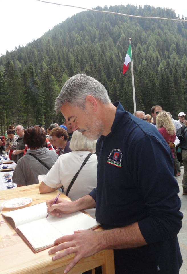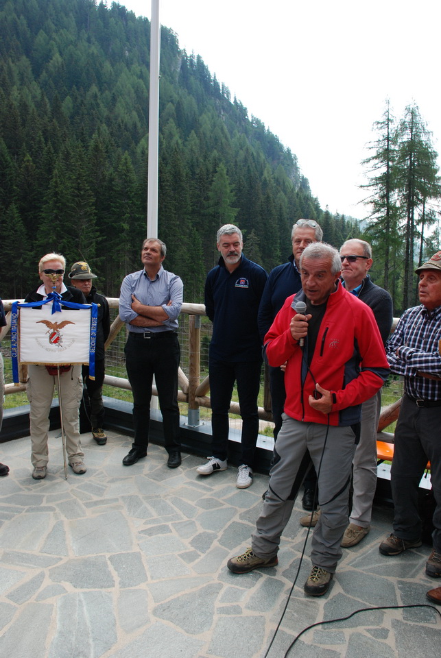 La cerimonia è iniziata con l’alzabandiera e l’inno nazionale. Quindi il Presidente della Società Alpina delle Giulie Privileggi, dopo aver ricordato le figure dei fratelli Aurelio e Fabio Nordio e dell’alpinista Riccardo Deffar ai quali è intitolato il rifugio, ha brevemente illustrato la storia del rifugio Nordio – Deffar, soffermandosi in particolare sull’alluvione del 2003 che ha danneggiato gravemente la precedente struttura. In conseguenza la Protezione civile regionale ha imposto la delocalizzazione del rifugio nell’area dove sorge ora il nuovo rifugio. Il Presidente Privileggi ha quindi ringraziato la Protezione Civile della Regione per il contributo economico stanziato per la realizzazione della nuova struttura.