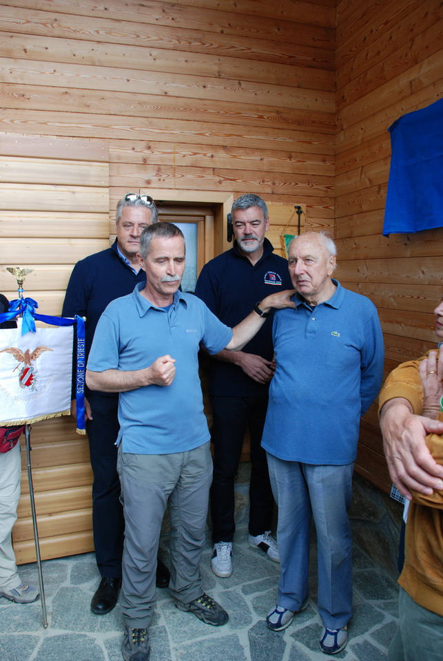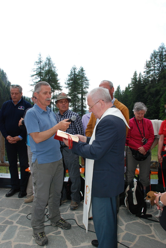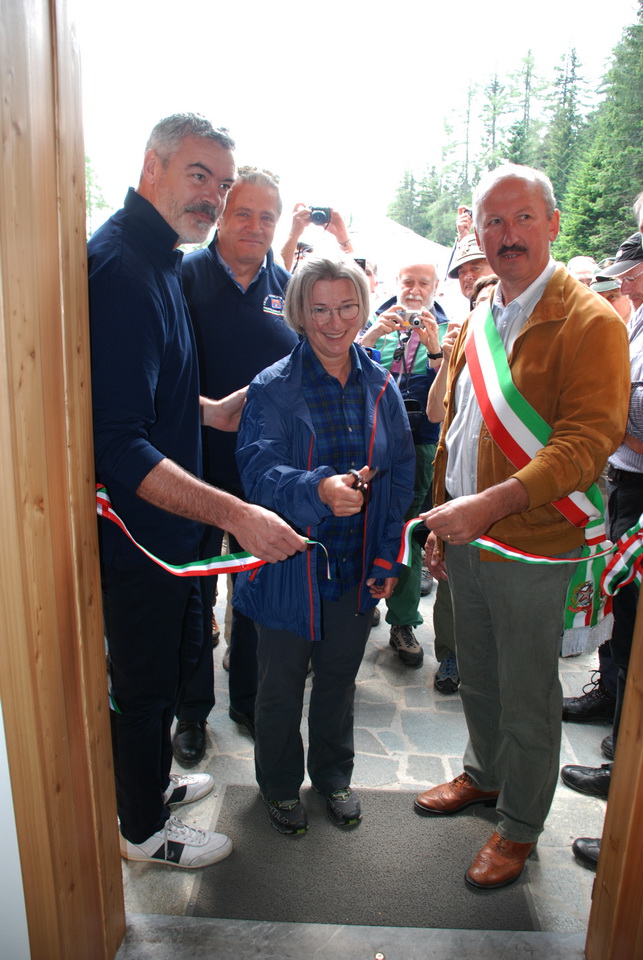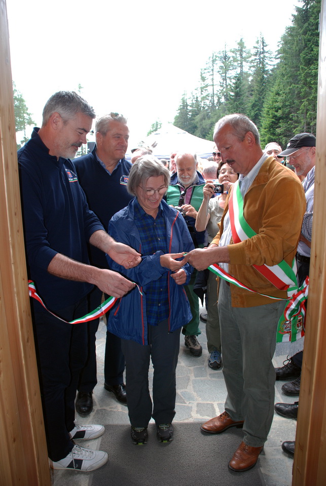 La cerimonia è proseguita quindi con la benedizione del rifugio. Infine l’Assessore Panontin ha scoperto la targa di intitolazione del rifugio ed ha tagliato il nastro inaugurale.