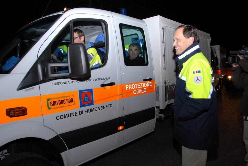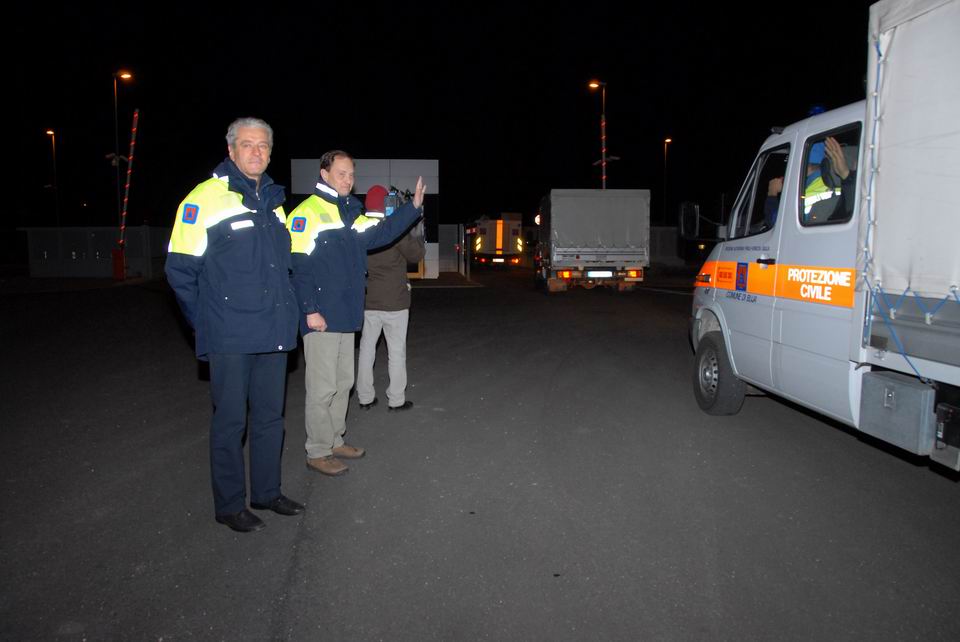 Alle ore 24:00 di domenica 12 febbraio 2012 una colonna mobile di volontari dei Gruppi comunali di Protezione civile della Regione Friuli Venezia Giulia è partita dal centro operativo di Palmanova alla volta della provincia di Pesaro e Urbino per portare soccorso alle popolazioni colpite dalle abbondanti nevicate dei giorni scorsi.