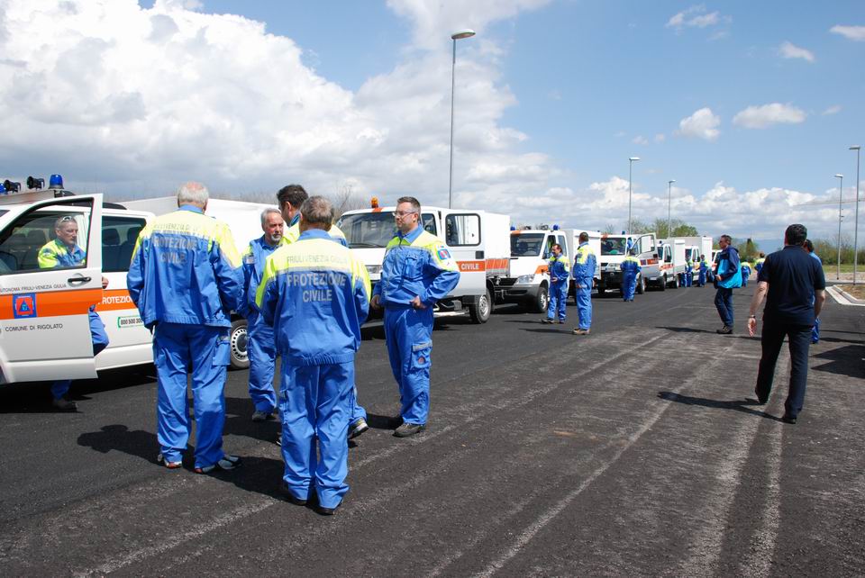Alle ore 13:00 del 17 aprile 2009 la quarta colonna mobile dei volontari di Protezione civile del Friuli Venezia Giulia è partita dalla Sede operativa di Palmanova per le zone colpite dal sisma in Abruzzo. Gli oltre 70 volontari sono andati a dare il cambio ai loro colleghi già impegnati nell’emergenza terremoto, partiti il 10 aprile scorso, e a garantire continuità nelle attività di supporto alla popolazione, come allestimento tendopoli, consegna vestiario e distribuzione pasti. Prima della partenza si è svolto un briefing tra i tecnici della Protezione civile e i volontari responsabili dei mezzi.