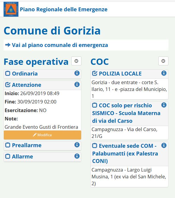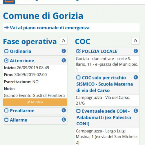 Gusti di Frontiera a Gorizia apre oggi i battenti. La mega festa enogastronomica tranfrontaliera durerà fino a domenica prossima 29 settembre e porterà nella cittadina isontina centinaia di migliaia di turisti che ogni anno invadono la città per assaporare e gustare cibi e bevande da tutto il mondo. Per garantire il coordinamento delle forze preposte alla gestione in sicurezza degli ingenti flussi nei 4 giorni di durata della kermesse, il Comune di Gorizia ha previsto l'attivazione del Centro Operativo di Comunale (COC) presso il Comando della Polizia locale. Anche i volontari di protezione civile sono stati attivati in gran numero per il supporto alle forze dell'ordine messe in campo per garantire la sicurezza della manifestazione. In occasione della manifestazione e per l'intera durata, il Comune ha attivato la procedura informatica, realizzata dagli sviluppatori della Protezione civile FVG, assieme al portale interattivo dei piani di emergenza (https://pianiemergenza.protezionecivile.fvg.it/) .