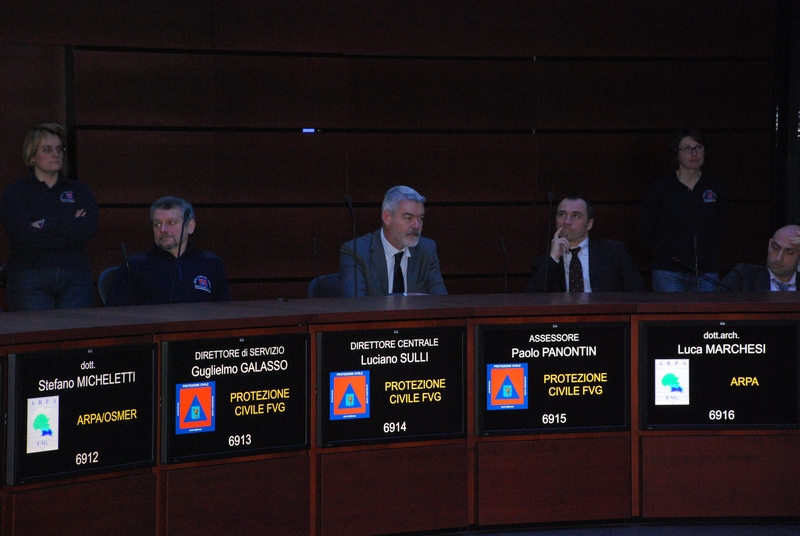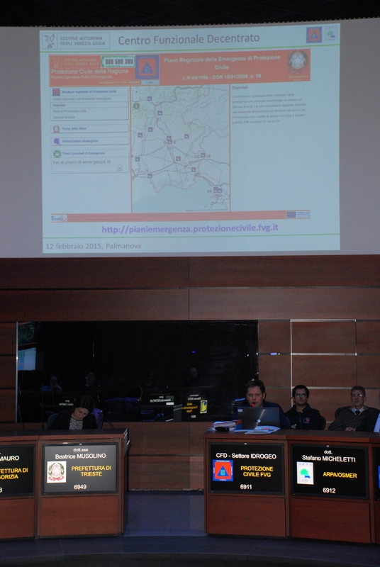 Dopo i saluti dei direttori Luciano Sulli (Protezione civile), Luca Marchesi (Arpa), e dei responsabili delle rispettive strutture Guglielmo Galasso e Stefano Micheletti, i tecnici hanno illustrato i nuovi Bollettini e Avvisi metereologici consultabili alla pagina web http://cfd.protezionecivile.fvg.it, assieme alle modalità di allertamento del sistema regionale integrato di protezione civile. In chiusura l'assessore Panontin ha ribadito la sua soddisfazione per il positivo avvio dell'attività del Centro funzionale del Friuli Venezia Giulia, "un importante tassello che porta a compimento il sistema di allertamento nazionale, statale e regionale per il rischio idrogeologico ed idraulico ai fini di protezione civile, dando attuazione alla legge regionale 3 del 2014".