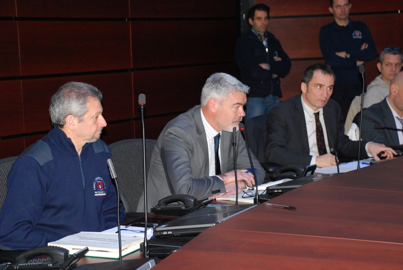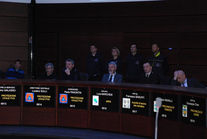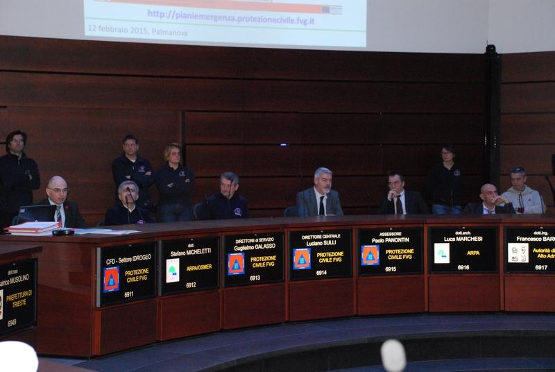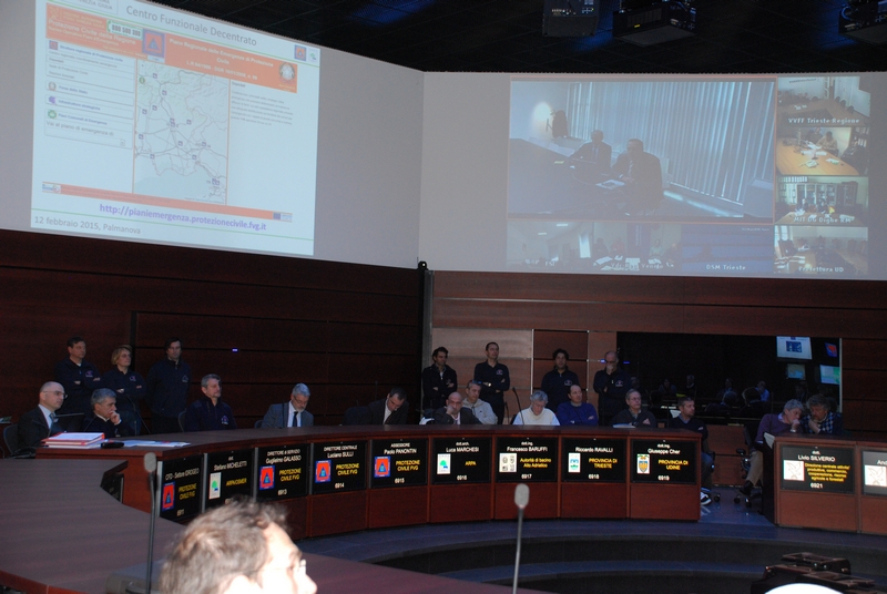 All'interno della "sala ottagonale" del Centro operativo di Palmanova i vertici della Protezione civile regionale hanno presentato le attività del Centro ai rappresentanti delle Prefetture, alle Autorità di bacino, alle direzioni centrali della Regione, agli enti competenti in materia di viabilità, servizi essenziali e strutture operative. Collegati in videoconferenza il dipartimento nazionale della Protezione civile, l'analogo Centro funzionale decentrato della Regione Veneto e la direzione generale delle dighe di Roma.