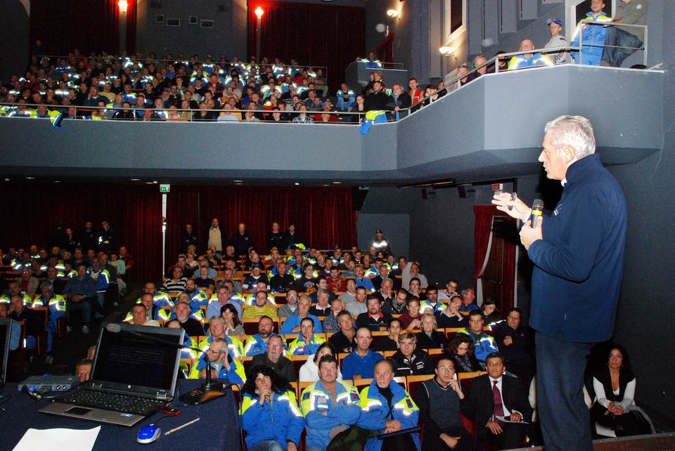 Venerdì 21 ottobre 2011 si è tenuto, presso il Teatro “G. Modena” di Palmanova, un incontro con i responsabili dei Gruppi comunali di protezione civile del Friuli Venezia Giulia per la presentazione dell'esercitazione regionale di Protezione civile che verrà effettuata nelle giornate 5-6 e 12-13 novembre e che prevede l'esecuzione di lavori per la pulizia e la messa in sicurezza lungo la cinta muraria della Città di Palmanova. All'incontro, presieduto dal Direttore Centrale della Protezione civile della Regione, dott. Guglielmo Berlasso, hanno preso parte oltre 400 tra coordinatori e capisquadra dei Gruppi comunali del Friuli Venezia Giulia.