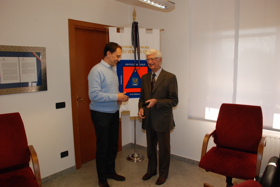 Il dottor Moretti è stato quindi ricevuto dal Vicepresidente della Giunta Regionale ed Assessore alla Protezione civile, dott. Luca Ciriani, e dal Direttore centrale, dott. Guglielmo Berlasso.