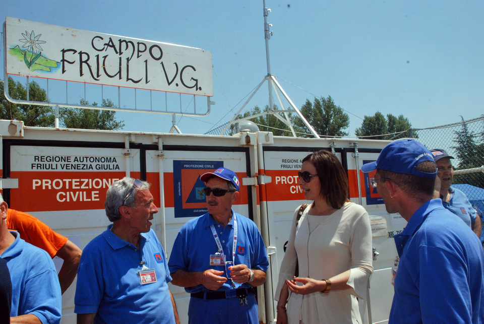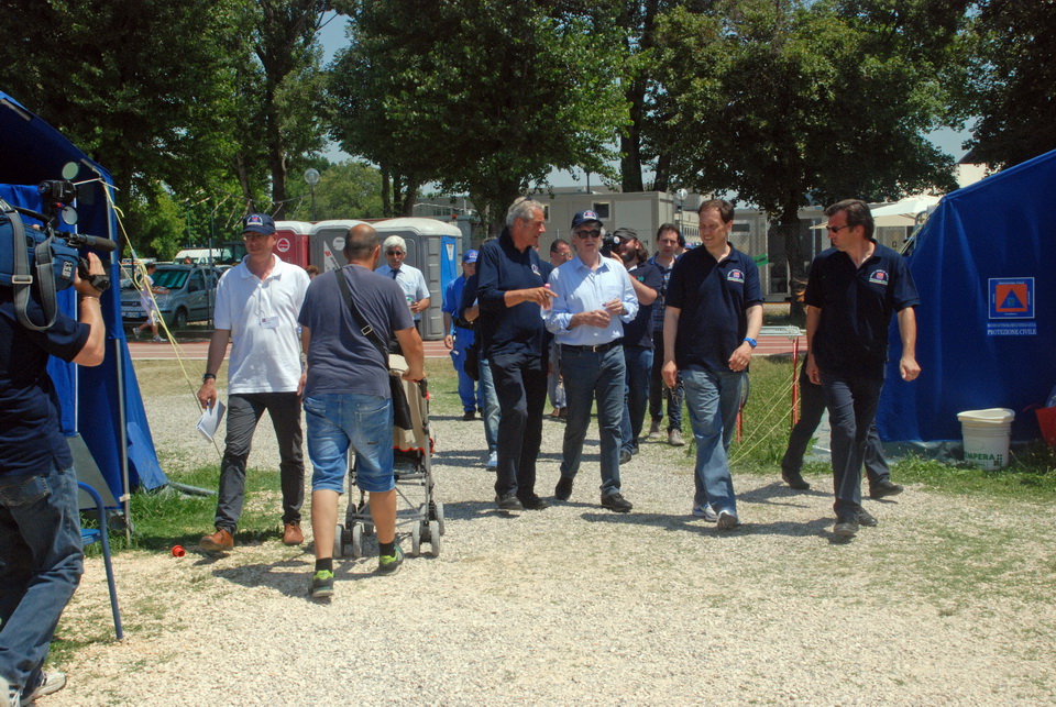 La delegazione si è poi recata nel campo allestito, dopo la scossa sismica del 29 maggio, nella frazione di Quarantoli; dopo la visita il Presidente Tondo, l'Assessore Ciriani e il Direttore Berlasso hanno avuto un momento di confronto con le autorità locali sulla gestione operativa dei campi.