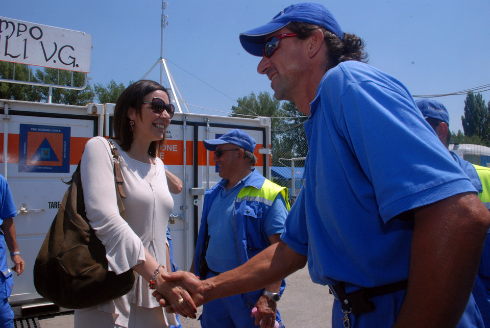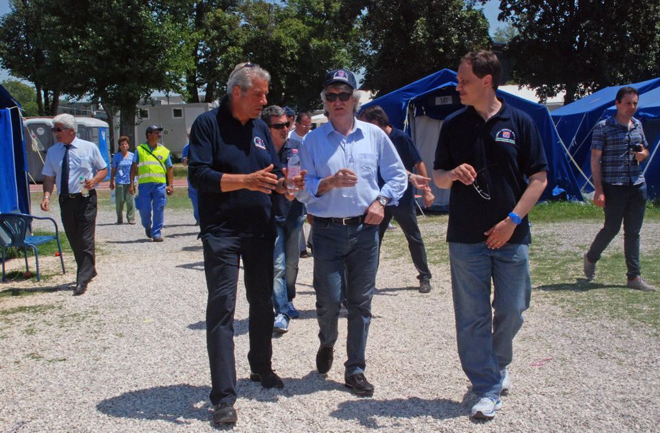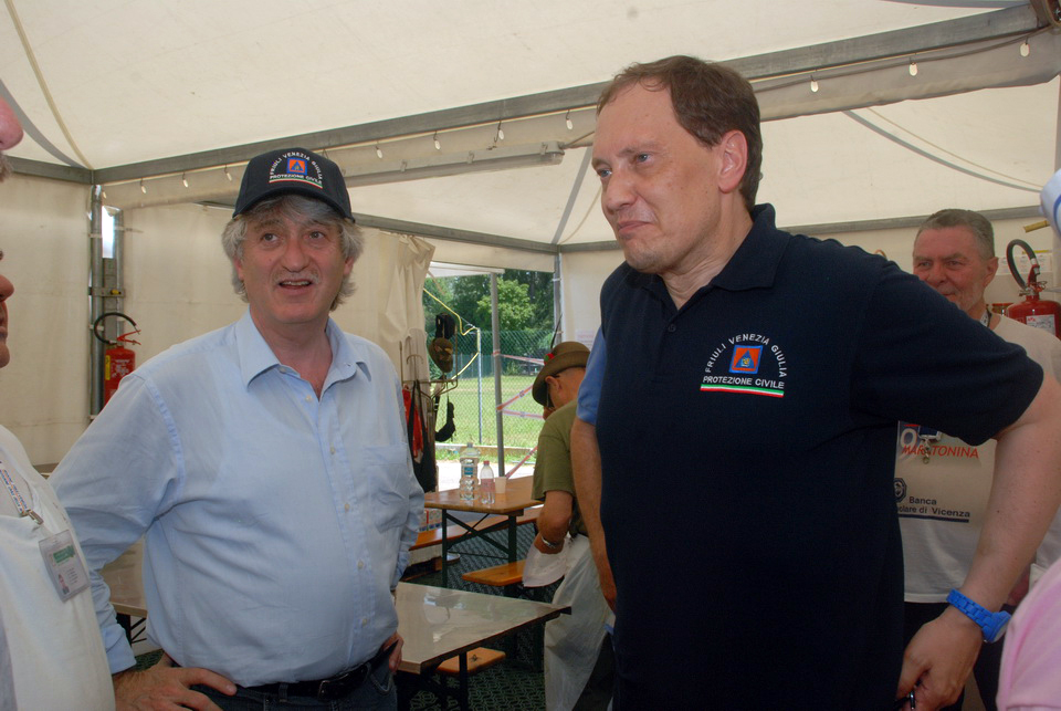 Visita del Presidente della Regione Renzo Tondo ai campi allestiti dalla Protezione Civile del Friuli Venezia Giulia in comune di Mirandola (MO)