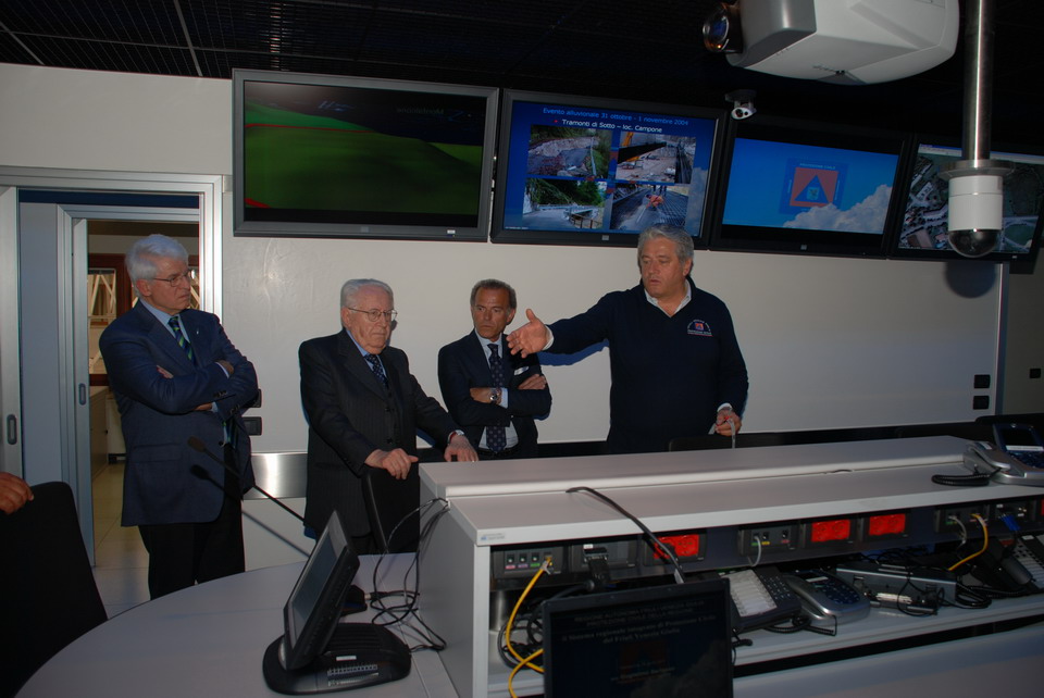 Il Direttore centrale ha quindi mostrato all'onorevole il centro di calcolo e la sala radio, spiegandone la tecnologia utilizzata per realizzarle. L'onorevole Zamberletti ha quindi visitato la Sala Operativa Regionale (SOR) e la sala emergenze, in tale ambito il Direttore ha illustrato il Sistema regionale di Protezione civile e sottolineando la collaborazione instaurata tra la Protezione Civile regionale con le strutture periferiche dello Stato competenti in materia di protezione civile che ha consentito la realizzazione di sale operative, collegate in videoconferenza con Palmanova, presso le prefetture, i Comandi provinciali e regionale dei Vigili del Fuoco, la Capitaneria di Porto di Trieste, i Comandi provinciali della Polizia di Stato e dell’Arma dei Carabinieri e le sedi della Polizia municipale dei capoluoghi del Friuli Venezia Giulia.
