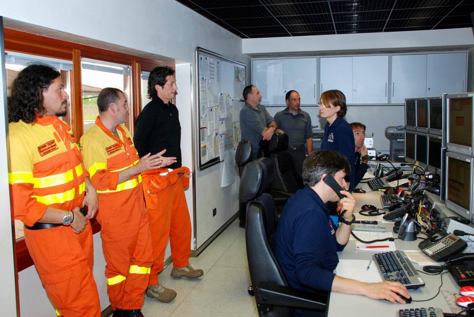 I tecnici della Protezione civile hanno accolto gli ospiti e li hanno accompagnati nella visita del Centro Operativo, soffermandosi in particolare presso la Sala Operativa Regionale (SOR), il centro di calcolo e la sala emergenze. Hanno quindi illustrato la struttura del Sistema di Protezione civile del Friuli Venezia Giulia e come si relaziona con Prefetture e altri Organi dello Stato in caso di calamità e/o di eventi in emergenza, con particolare riferimento alle attività relative agli incendi boschivi (prevenzione, lotta attiva e ripristino).