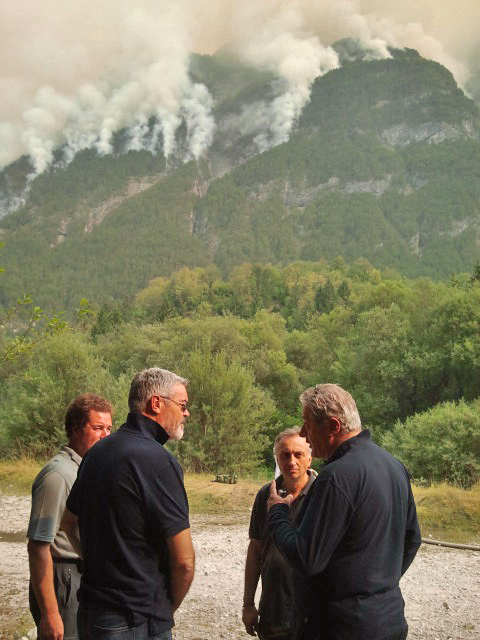 Nel pomeriggio del 6 agosto la Presidente della Regione Debora Serracchiani e l'assessore alla Protezione civile Paolo Panontin hanno effettuato un sopralluogo delle zone colpite dai due incendi. Da prima hanno sorvolato con un elicottero della Protezione civile le aree di Chiusaforte e di Pontebba. Successivamente la Presidente Serracchiani e l'assessore Panontin hanno visitato le aree di intervento sul monte Jovet, in Val Raccolana. Nel corso del sopralluogo la Presidente e l'Assessore hanno incontrato il sindaco di Chiusaforte, Luigi Marcon, il Direttore centrale della Protezione civile Regionale, Guglielmo Berlasso, il personale del Corpo forestale regionale e i volontari e tecnici della Protezione civile, da giorni impegnati sul fronte degli incendi e nei lavori di sfalcio e potatura a prevenzione a salvaguardia dei centri abitati della zona. La Presidente ha ringraziato i volontari ed i tecnici della Protezione civile, i Vigili del Fuoco e il personale del Corpo forestale regionale da giorni impegnati per fermare il fronte dell'incendio e per salvaguardare i piccoli centri abitati della zona. L'Assessore Panontin ha sottolineato la difficoltà delle operazioni dovuta alla siccità ed al vento, uniti all'asperità della territorio colpito. L'Assessore ha ringraziato anche il prefetto Franco Gabrielli per i Canadair e per l'elicottero Ericksson del Dipartimento nazionale inviati in Friuli Venezia Giulia per le operazioni di spegnimento degli incendi.