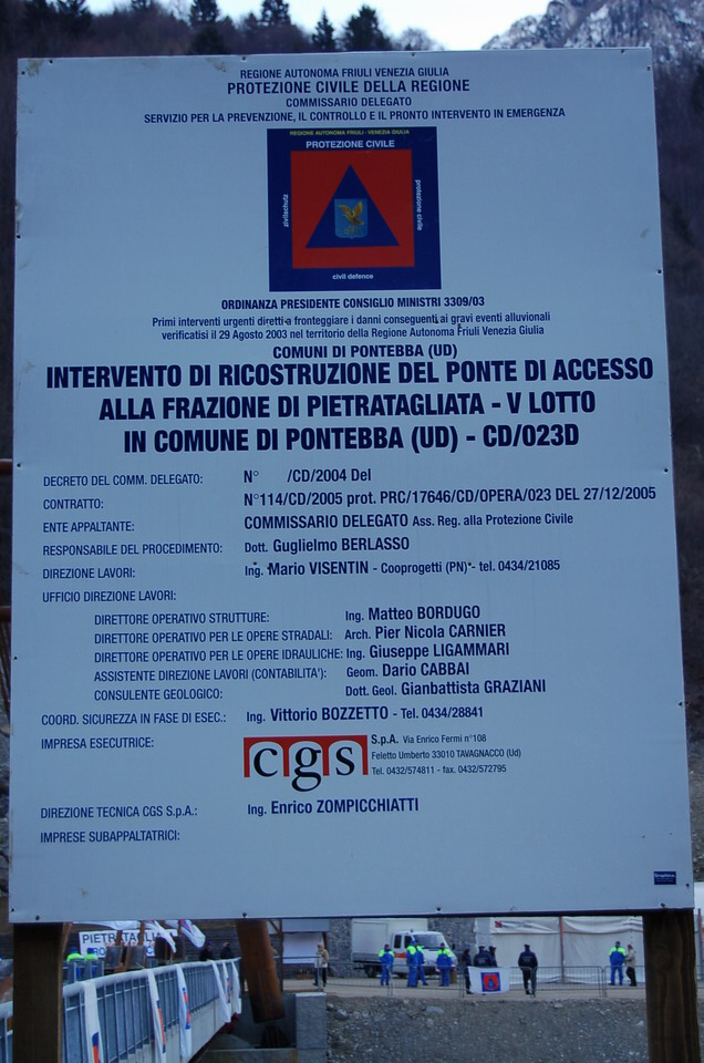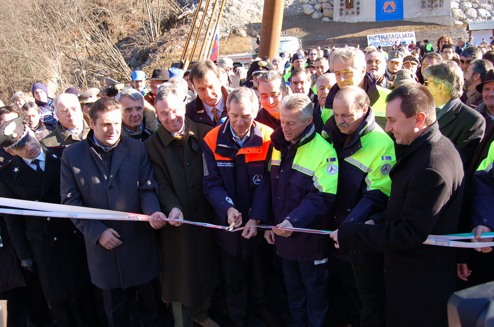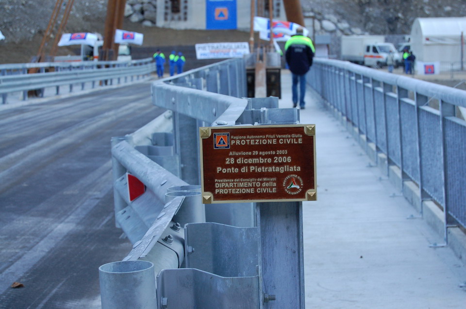 Infatti il 28 dicembre 2006 alle 11.45, alla presenza Capo Dipartimento Nazionale della Protezione civile Guido Bertolaso, del sottosegretario agli interni Ettore Rosato, del Presidente della Giunta Regionale Riccardo Illy e del Commissario straordinario per la ricostruzione, Gianfranco Moretton è stato ufficialmente inaugurato il nuovo ponte sul Fiume Fella a Pietratagliata, nel Comune di Pontebba.