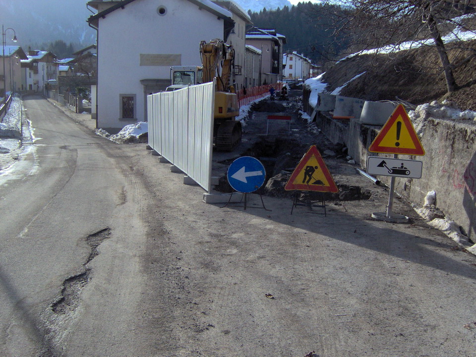 I lavori (OPI 669) consistono nella tombinatura di un tratto del Rio Piccolo nei pressi del parcogiochi e nella posa di un tubo drenante sotto la strada comunale con captazioni delle acque superficiali provenienti dal versante sottostante la strada statale 52.