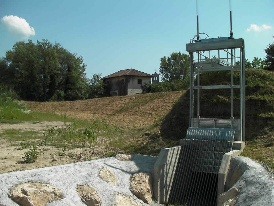 - sistemazione e riprofilatura dell’ argine sinistro, dal punto di collegamento all’argine destro del Fiume Isonzo verso monte fino alla Trattoria al Molino, compresa la realizzazione di una chiavica dotata di valvola a Clapet e paratoia piana per lo sgrondo delle acque meteoriche provenienti dalle aree agricole. Nel tratto terminale dell’argine è stata realizzata una zona di sfioro controllata rivestita con un sistema antierosivo; nella zona dello smeriglio l’argine si innesta nel terrapieno esistente con franco di sicurezza ridotto rispetto a quello previsto per l’argine;