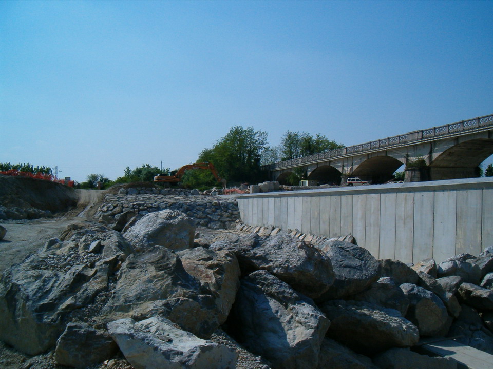 I lavori, che sono in fase di ultimazione, al loro completamento potranno garantire la sicurezza del ponte sulla SS56 nonché del ponte della vicina linea ferroviaria Udine-Gorizia.
