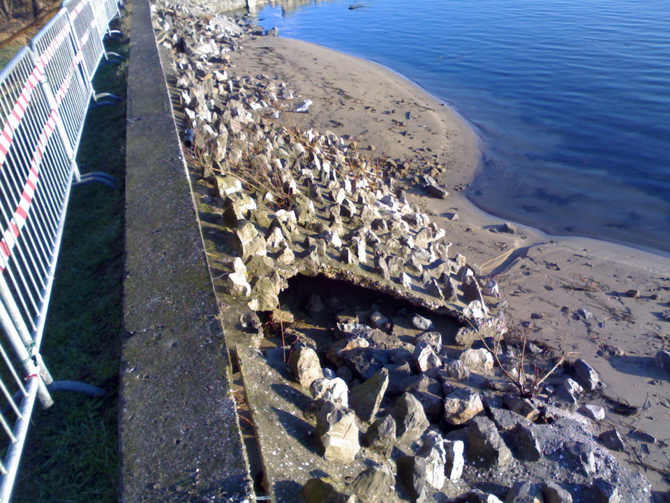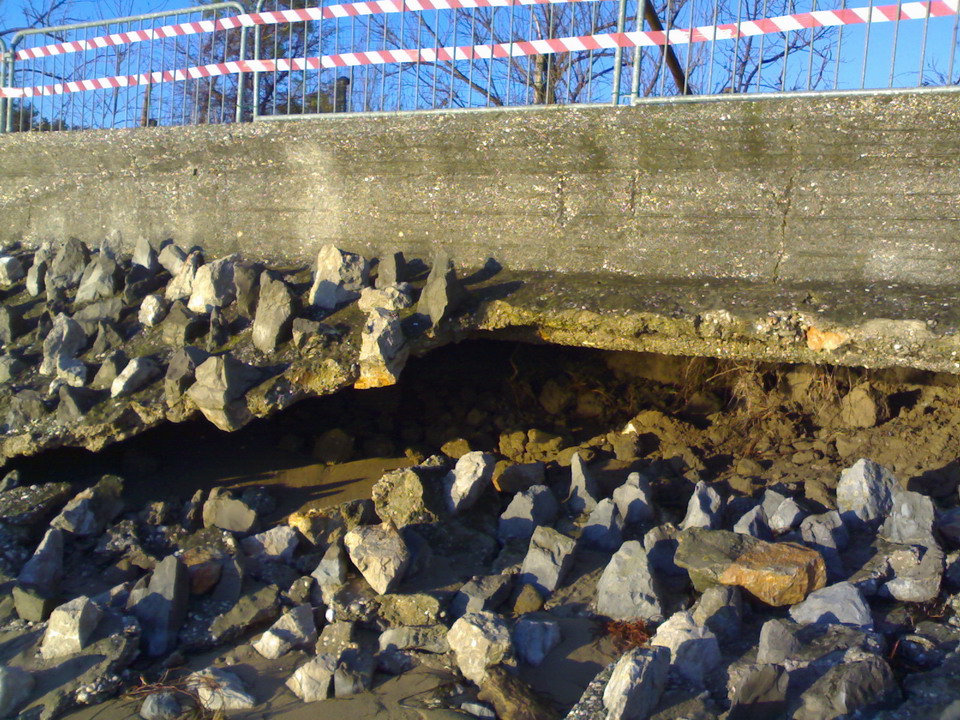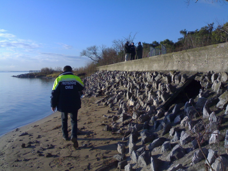 A tal riguardo la Protezione civile ha dato immediato avvio ad un intervento urgente, autorizzato con Decreto dell’Assessore regionale alla Protezione civile n. 1243/PC dd. 03/12/2008, per la messa in sicurezza del tratto di argine a mare.