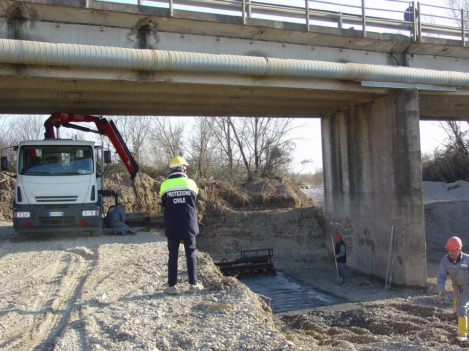 Intervento urgente di protezione civile in Comune di Chiopris Viscone (UD) per la messa in sicurezza del ponte sul torrente Torre lungo la Strada provinciale Palmarina