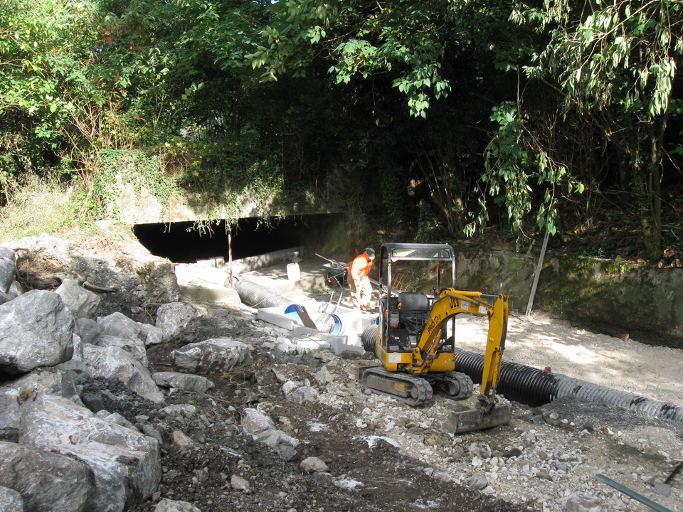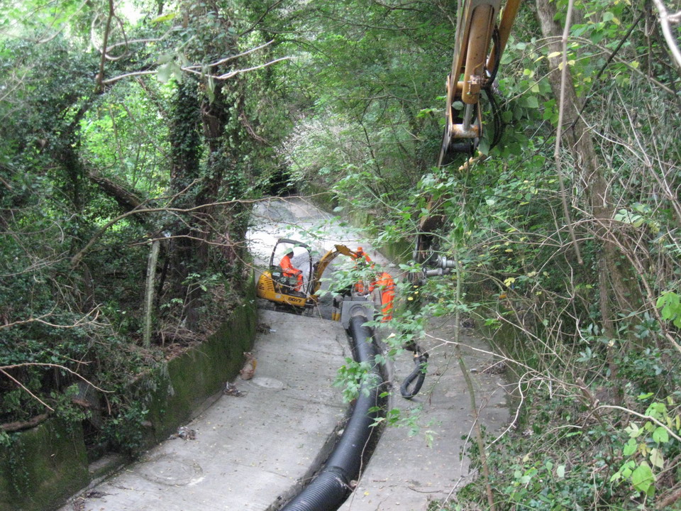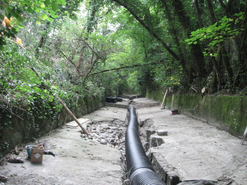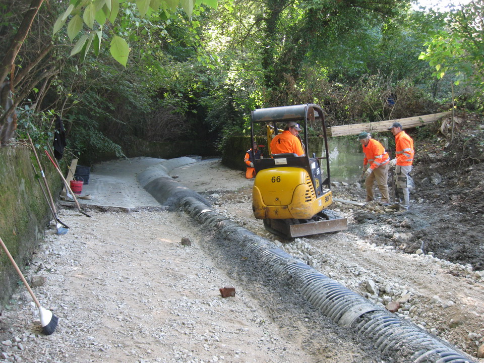 Proseguono i lavori in Comune di Gorizia nell’alveo del Torrente Corno autorizzati con decreto numero 891/PC/2009 di data 24 agosto 2009. L’area di cantiere interessata in questa fase dei lavori è quella in centro città a valle del parco della Valletta. È stata ultimata la posa della nuova condotta e si sta lavorando alla costruzione di un manufatto di imbocco e regolazione delle portate in corrispondenza del punto in cui l’alveo del Corno ritorna a cielo aperto.