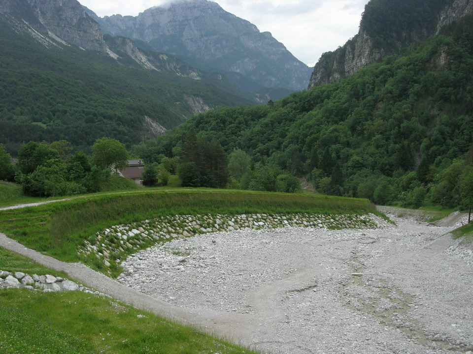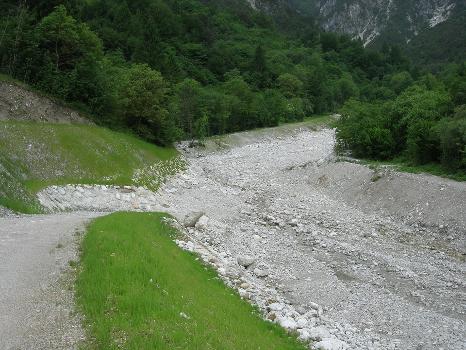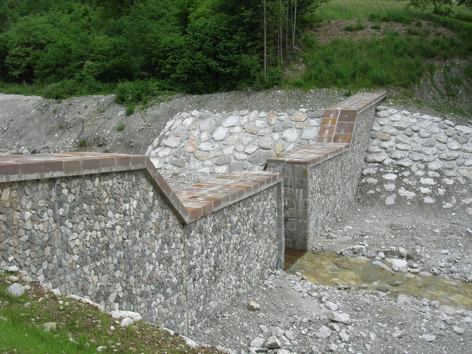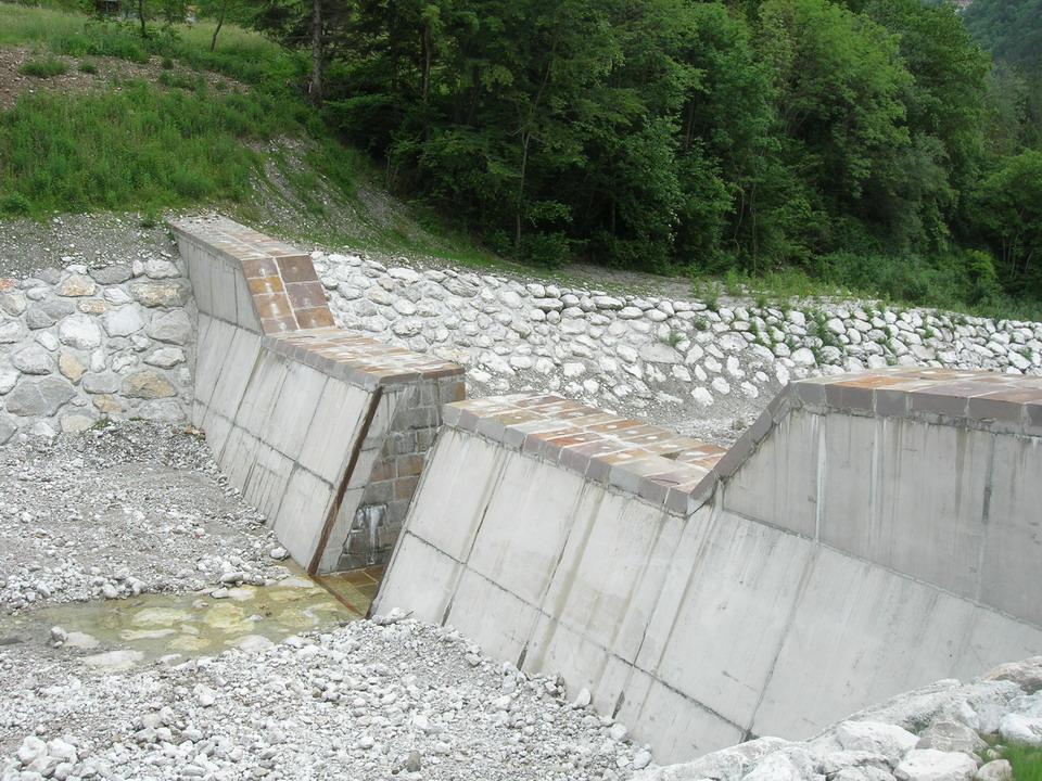Con questo intervento si è regimato idraulicamente il rio Forchia, affluente di destra idrografica del torrente Aupa dal ponte che porta alla località Monticello alla confluenza tra i due. Sono stati riprofilati l'alveo e le scarpate. Le scarpate sono state inerbite ed inoltre si sono realizzate delle scogliere lungo i tratti che sono stati particolarmente erosi dall'evento alluvionale dell’agosto 2003. La briglia esistente in prossimità delle vasche per l'allevamento ittico, di proprietà dell’Ente Tutela Pesca, sono state ripristinate ed allargate intasando dei grossi massi nel calcestruzzo. È risultato necessario realizzare inoltre una nuova briglia a fessura a monte delle due esistenti in modo da consentire il deposito del materiale grossolano lasciando passare solamente la parte più fina del trasporto solido ed una soglia trasversale all'alveo del rio Forchia con grossi massi, in prossimità della sezione di impostazione del vallo in terra armata. Mediante la realizzazione di una pista di accesso alla briglia viene garantito l'accesso al rio per consentire la pulizia e lo sghiaiamento.