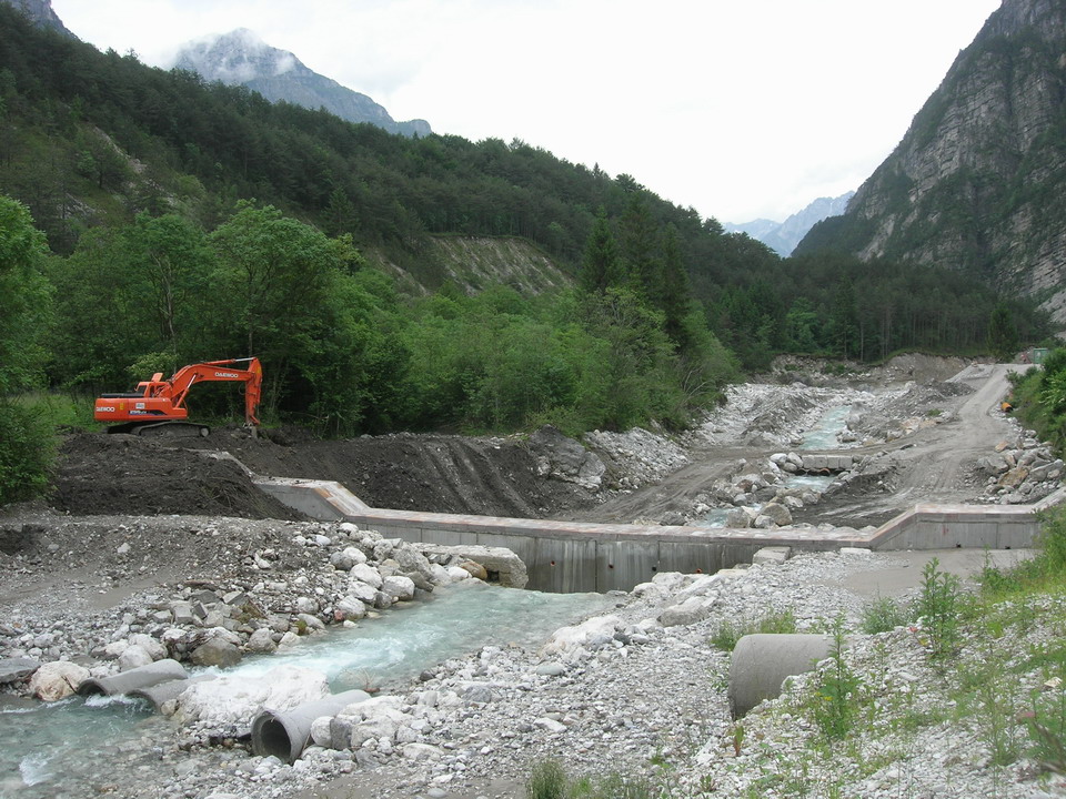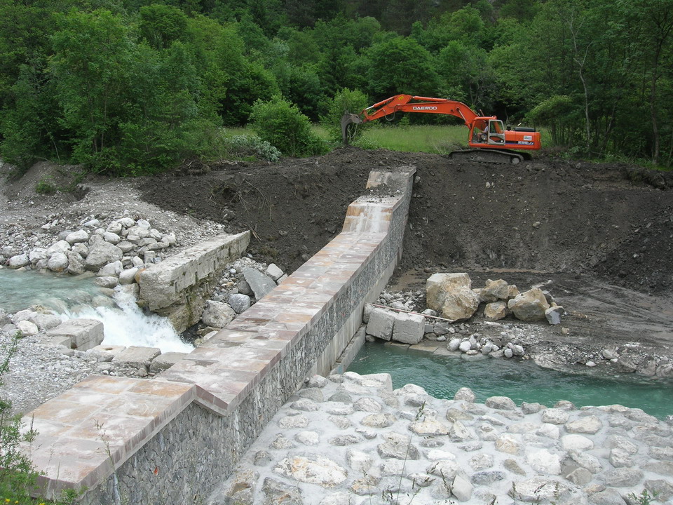 Sta per concludersi l’intervento in Comune di Moggio Udinese, identificato codice CD/R05/051, di regimazione idraulica del Rio Forchia e del Torrente Aupa a seguito dei danni causati dall’alluvione dell’agosto 2003, con la ricostruzione di una briglia in cemento armato sul Torrente Aupa subito a monte del tratto in cui il Rio Forchia si immette nel torrente Aupa. Lungo il torrente Aupa è stata sistemata una briglia già presente a circa 400 metri più a monte della confluenza con il rio Forchia innalzando le ali laterali ed abbassamento ed allargando la gaveta. A lato della Strada provinciale si è costruito un argine per evitare che le acque di piena invadano la sede stradale.