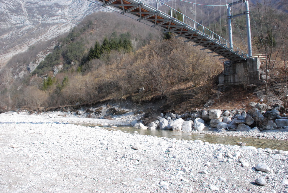 I lavori si sono resi necessari in quanto il dissesto e l’erosione della sponda sotto la spalla sinistra della passerella aveva raggiunto valori tali da costituire un serio pericolo per la sicurezza e la stabilità della struttura di attraversamento.