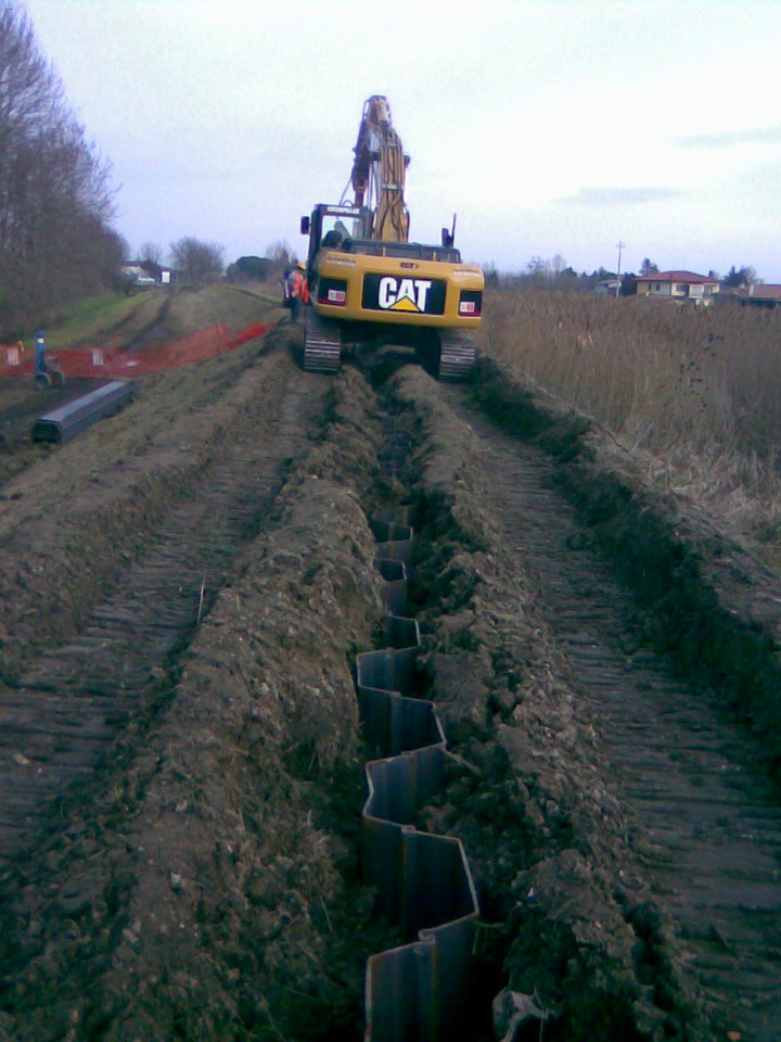 In particolare i lavori hanno riguardato il rialzo della quota arginale in sinistra idrografica per un tratto di circa 1400 m nei pressi del Capoluogo (tratto compreso tra via Aquileia e via S. Giorgio -circa 1000 metri- e tratto a monte e via S. Giorgio -circa 400 metri-), il completamento del rialzo arginale in destra idrografica per un tratto di circa 150 m (tratto a monte e via S. Giorgio), al fine di uniformare la quota di sommità arginale nel tratto a difesa del Capoluogo, nonché l’infissione di palancole di lunghezza pari a 9 m per un tratto di circa 100 m lungo l’argine di destra (tratto intermedio tra via Aquileia e via S. Giorgio) in continuità con i primi 110 m già realizzati con il sopraccitato intervento, al fine di ridurre il rischio di filtrazione.
