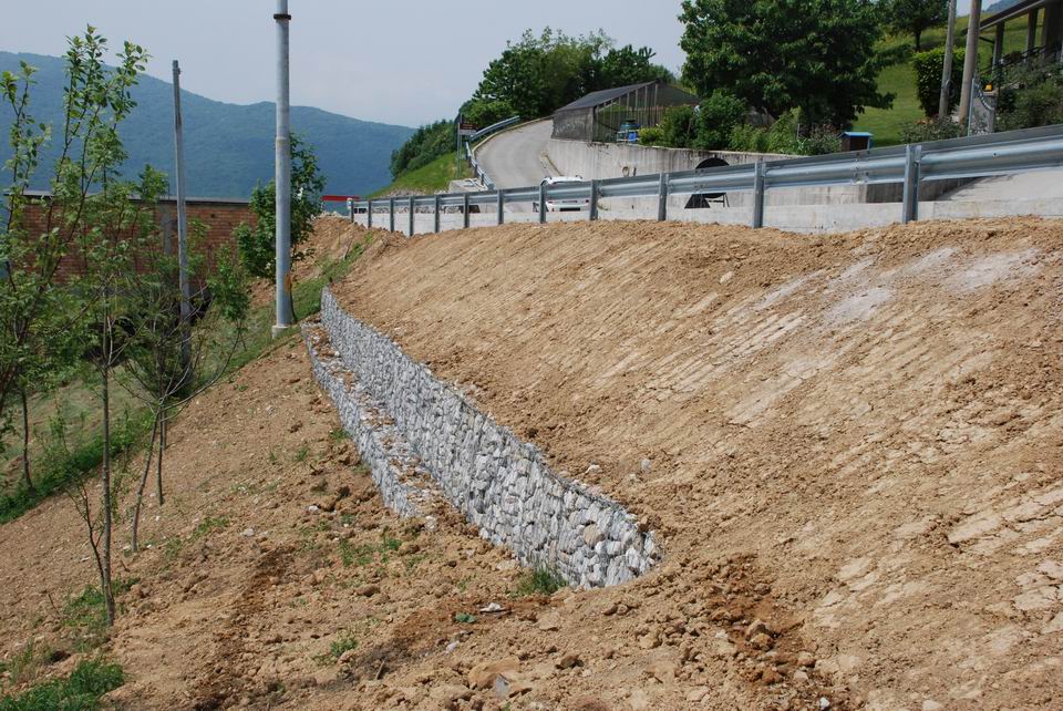 I lavori (OPI 620), finanziati con decreto n. 823/2008, consistono nella posa in opera di gabbionate, in rete metallica riempite con pietrisco, a sostegno della sede stradale.