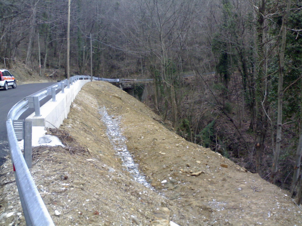 I lavori hanno riguardato in particolare il consolidamento del versante oggetto di smottamento tramite la posa in opera di un sistema di gabbionate metalliche, il rifacimento della sede stradale con la realizzazione di un cordolo laterale in cemento armato (banchettone) nonché il rifacimento del manto stradale.
