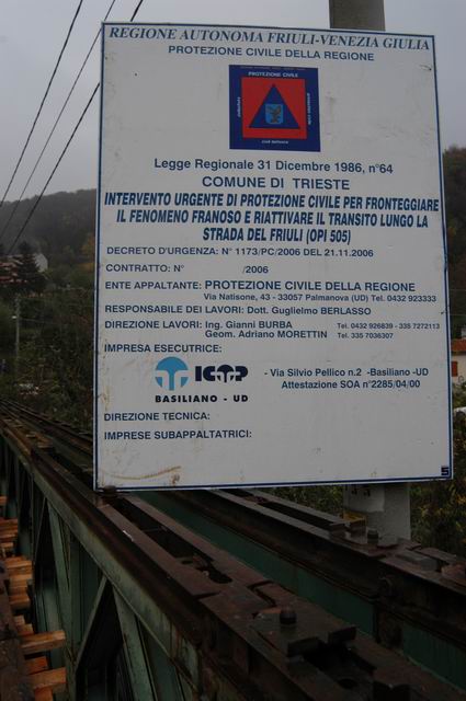 Lunedì 4 dicembre 2006 alle ore 9.00 alla presenza del Presidente della Regione, Riccardo Illy, dell’Assessore alla Protezione civile e  Vicepresidente della Regione, Gianfranco Moretton, del Sindaco di Trieste, Roberto Di Piazza, del Sindaco di Duino Aurisina, Giorgio Ret e del direttore centrale della Protezione civile regionale, Guglielmo Berlasso, è stato inaugurato il ponte Bailey nell’ambito dell’opera di ripristino urgente della viabilità lungo la Strada del Friuli.