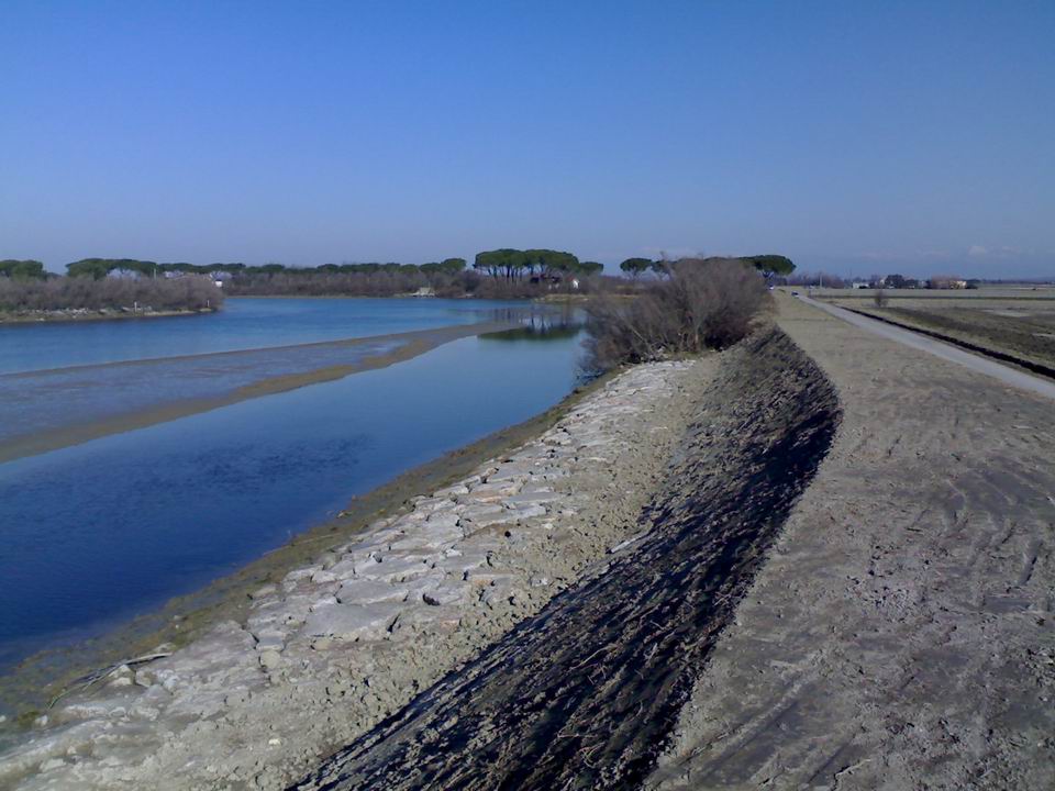 L’intervento ha riguardato il potenziamento di tratti dell’argine lagunare e della sua difesa a mare, nonché del suo livello di difesa dalle infiltrazioni di acque salmastre; in particolare si è provveduto al rialzo arginale di circa 530 ml di argine lagunare, al potenziamento della difesa a mare tramite la posa di massi lato laguna nonché alla infissione di circa 135 m di palancole in acciaio, prevalentemente in sommità arginale nel tratto limitrofo alle civili abitazioni. A margine dei lavori, nel mese di marzo, si provvederà all’inerbimento del tratto di argine rialzato nonché alla posa, lato laguna, di circa 1000 essenze tamarix. L’intervento, denominato OPI CD5/679.002, è finalizzato a ridurre il rischio di allagamento degli insediamenti abitativi e produttivi in caso di eventi meteo-marini estremi, nonché ridurre i rischi di infiltrazioni puntuali, tramite il potenziamento di tratti dell’argine lagunare e della sua difesa a mare nonché del suo livello di difesa dalle infiltrazioni di acque salmastre.