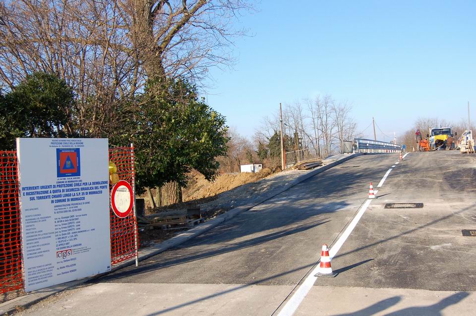 Sono stati ultimati i lavori relativi all’intervento urgente (OPI 430.032) di protezione civile per la demolizione e ricostruzione a quota di sicurezza idraulica del ponte sul torrente Chiarò lungo la Strada Provinciale 25 di Moimacco (UD), al fine di ridurre il rischio di allagamento del Comune stesso.