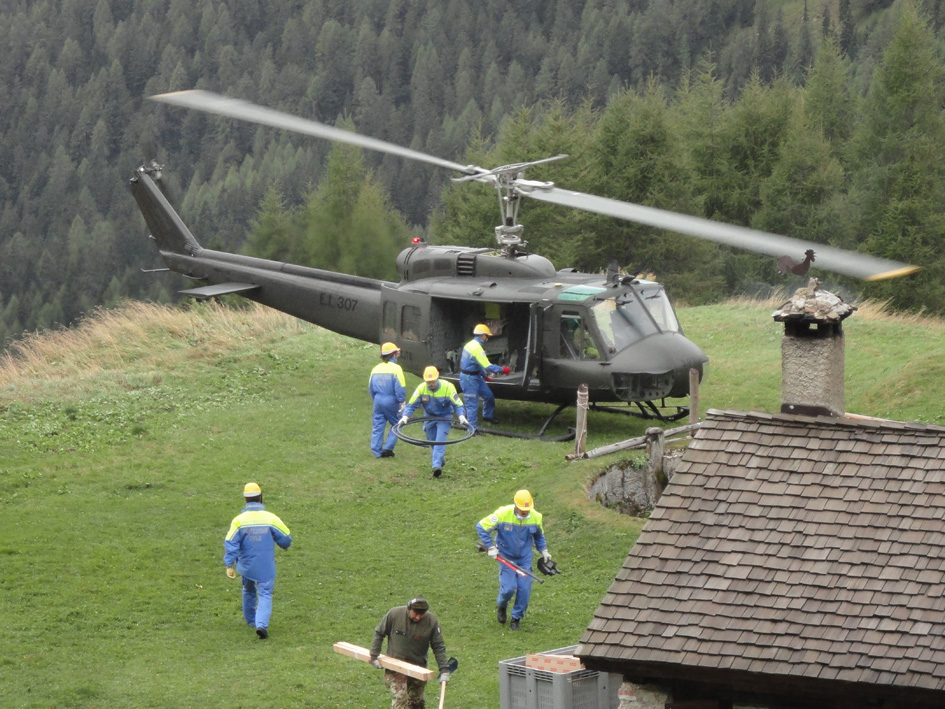 I due elicotteri, dopo aver lasciato alcuni volontari ed specialisti dell’esercito presso il ricovero, hanno iniziato le operazioni di trasporto dei materiali.